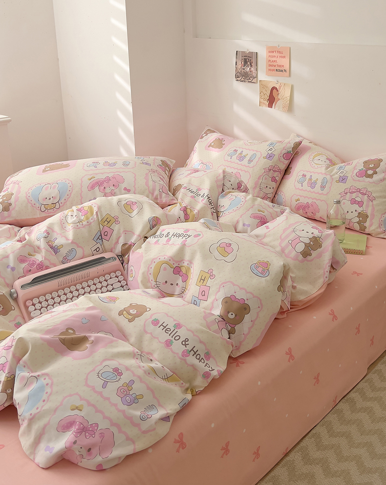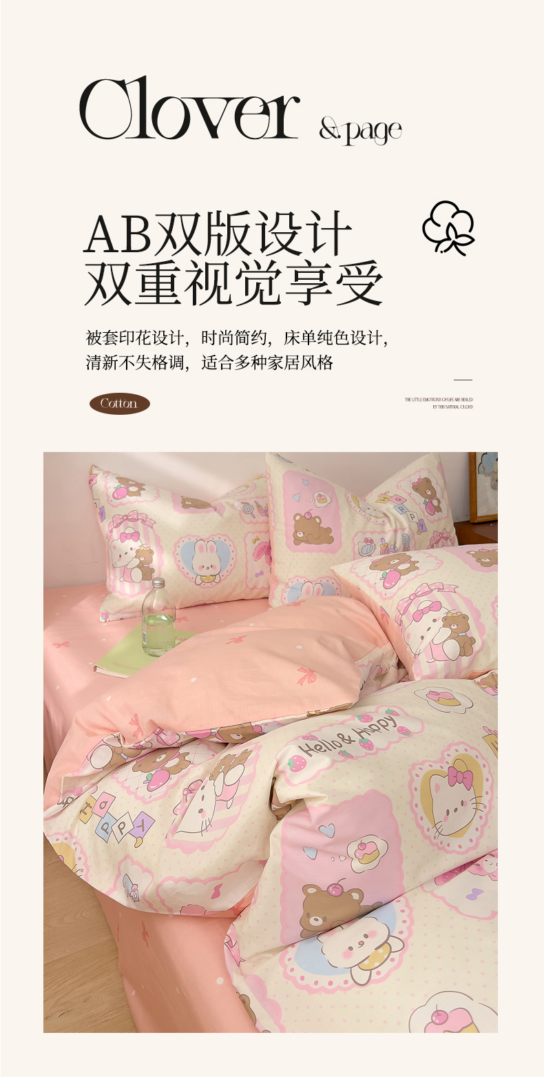 DoDo 兜兜 2026新款卡通全棉纯棉小清新三四件套系列 (可定做尺寸) 粉粉猫