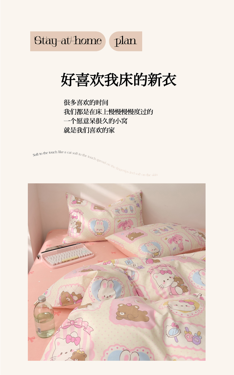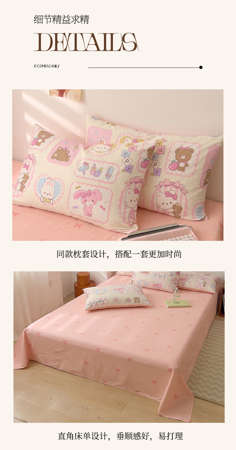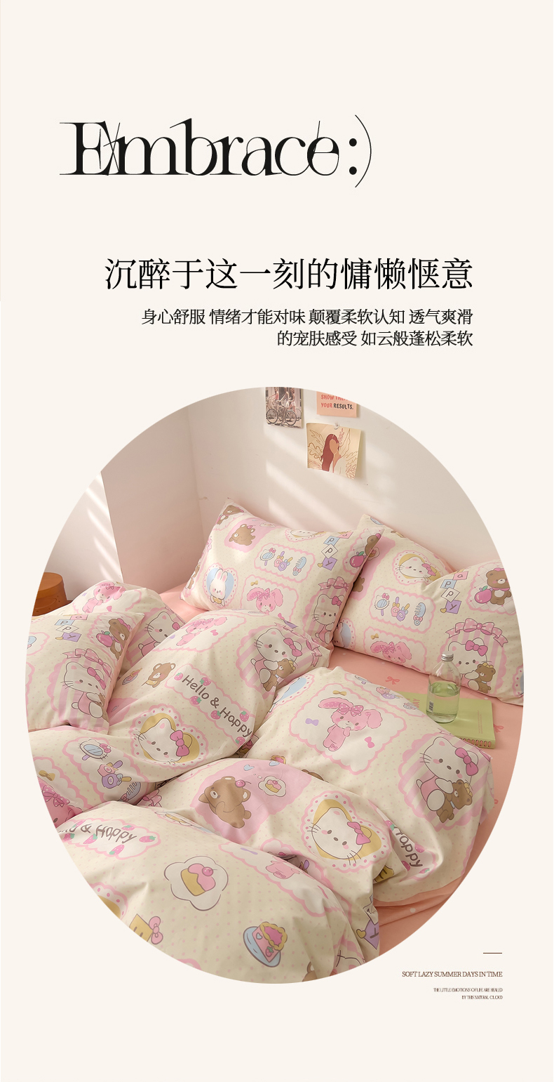 商品名称:DoDo 兜兜 2026新款卡通全棉纯棉小清新三四件套系列 (可定做尺寸) 粉粉猫
