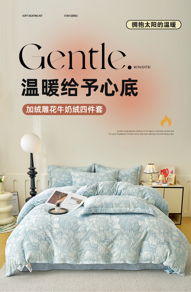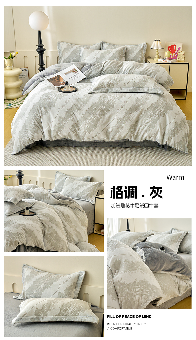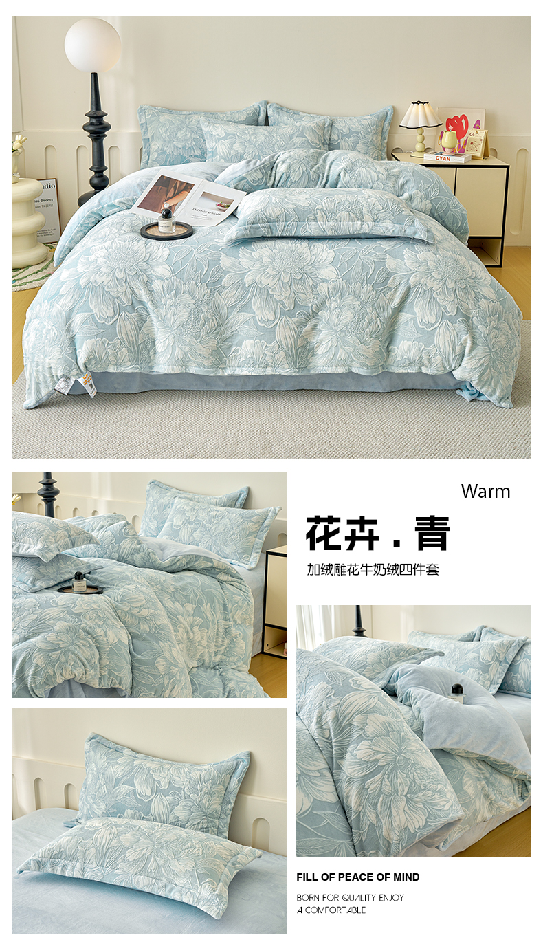 (总)贝诗梦 2025新款高克重230克5D雕花牛奶绒四件套,格调灰,格调咖,花卉粉,花卉咖,花卉蓝,花卉绿,花卉青,浪漫橙,浪漫蓝,柳叶青,生活橙,时尚咖
