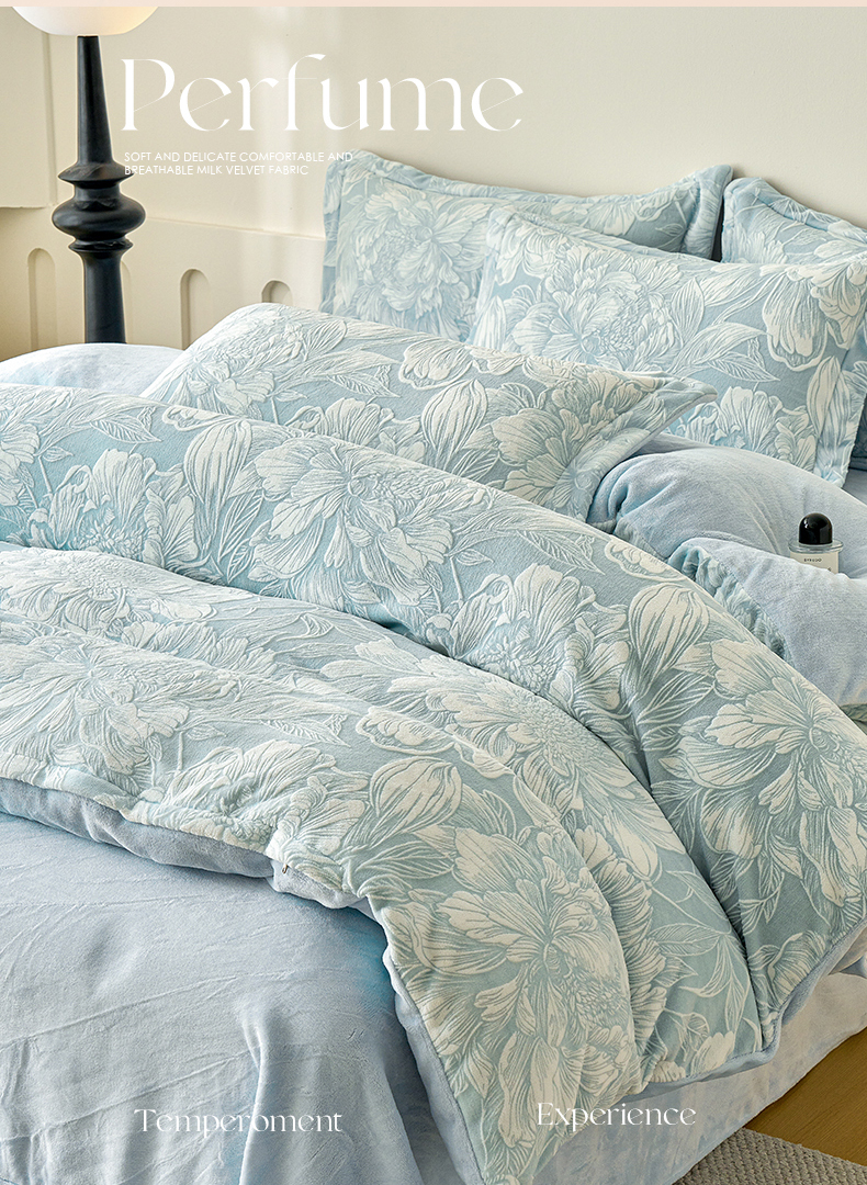 贝诗梦 2025直播8.5斤高克重牛奶绒金貂法莱绒保暖四件套 月光玫瑰,月光玫瑰