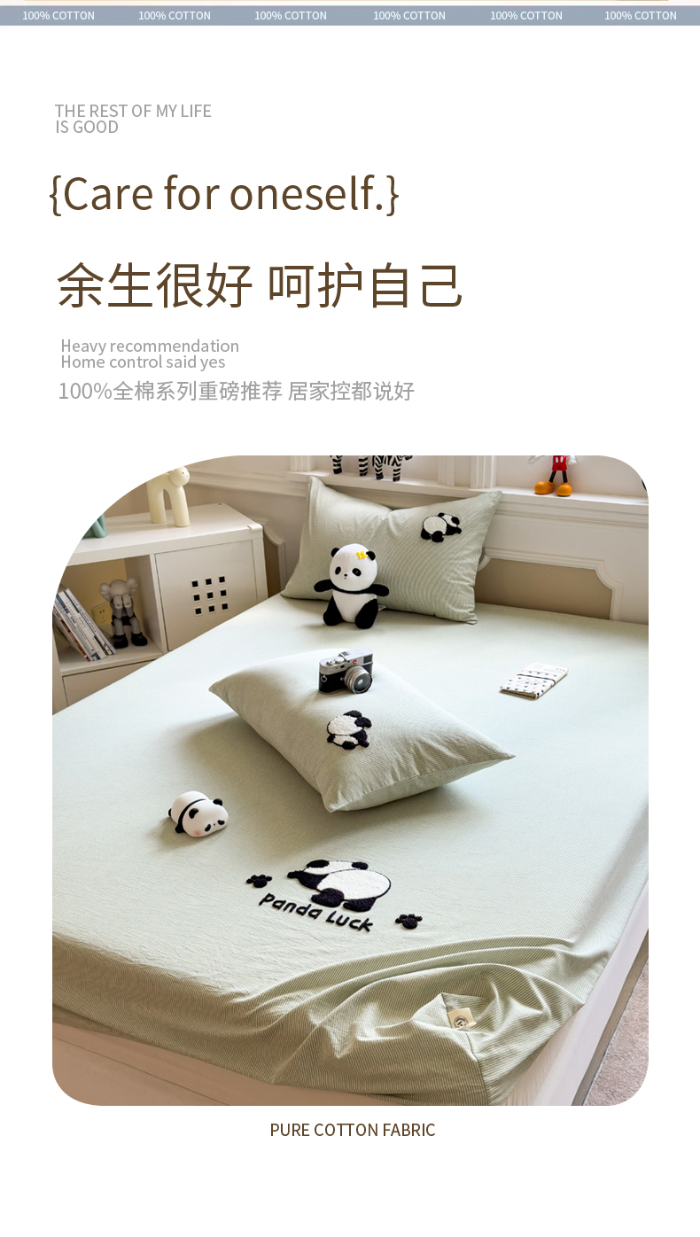 (总)席世家 2025新款绣花凉感床笠(控价198 218),格子熊猫,格子熊猫