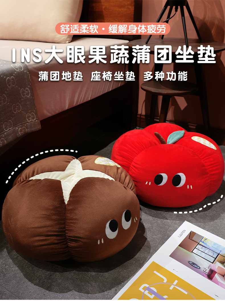 当前位置: 91家纺网 > 商品网购 > 居家日用 > 靠垫/抱枕 > 仟亿莱 2025新款ins大眼果蔬墩墩坐垫 香菇墩墩