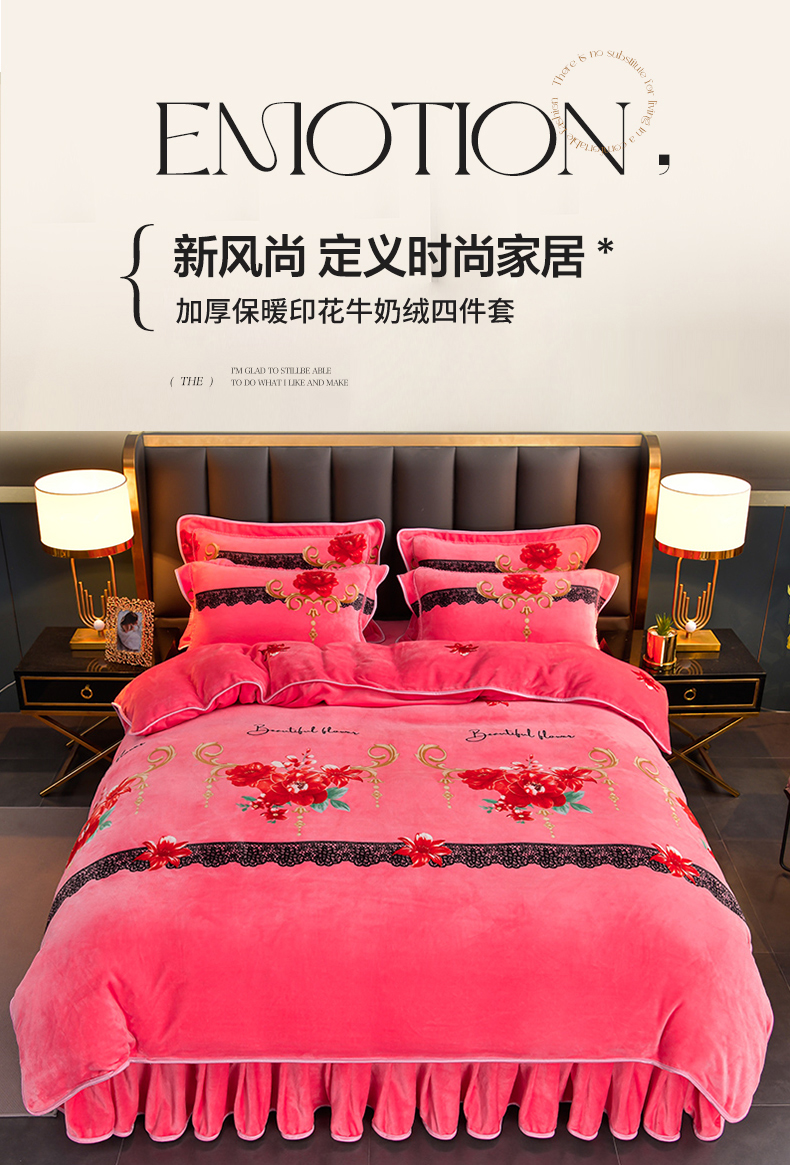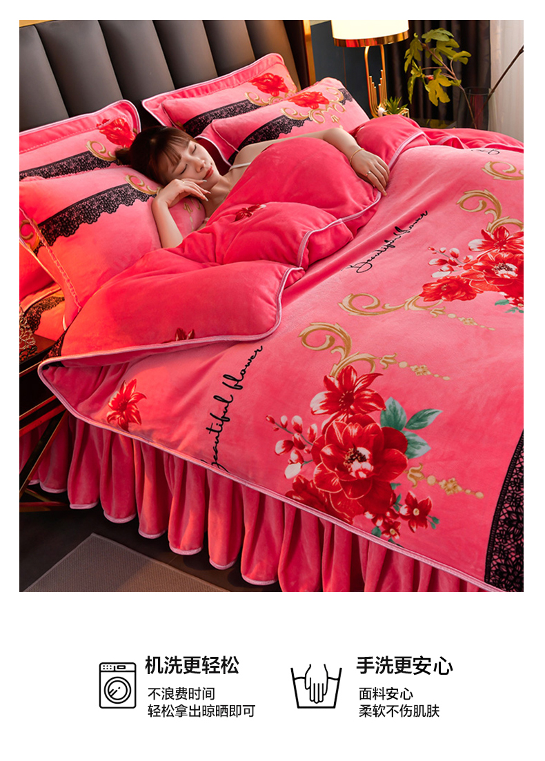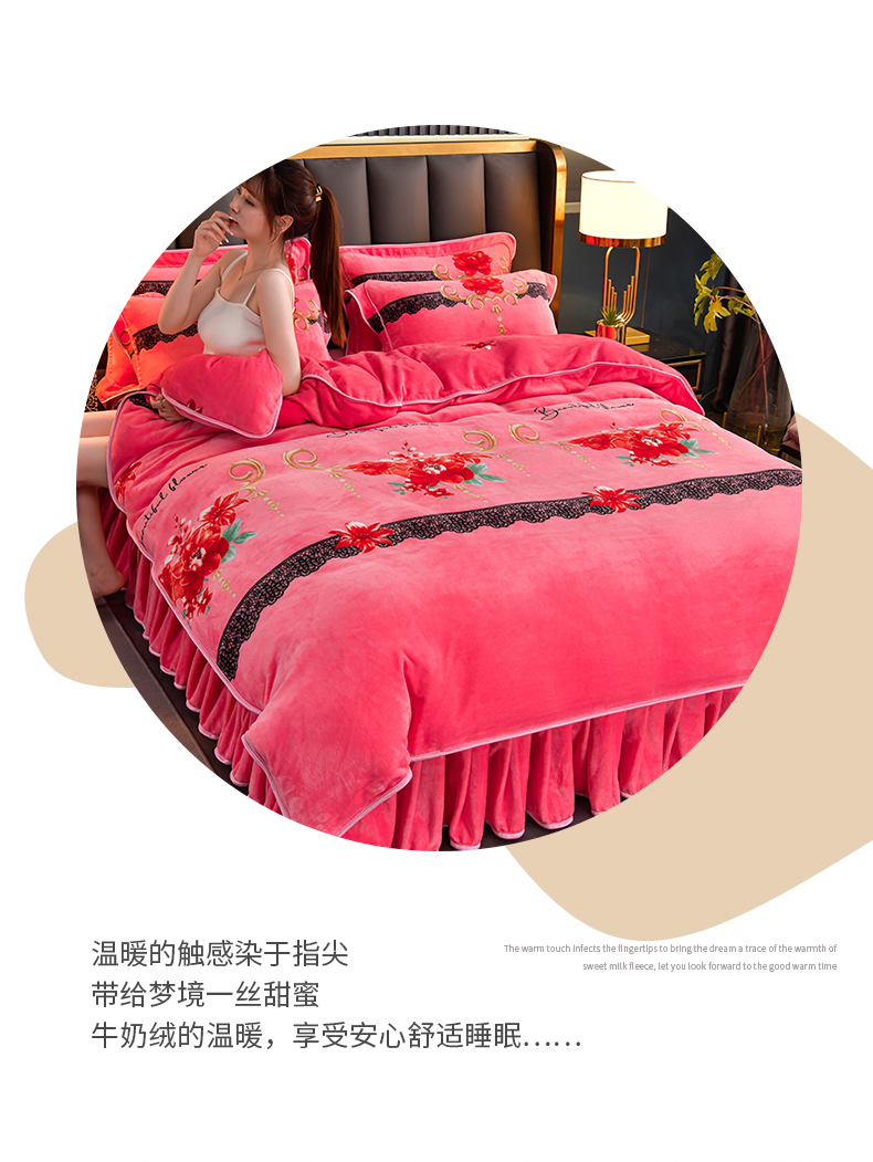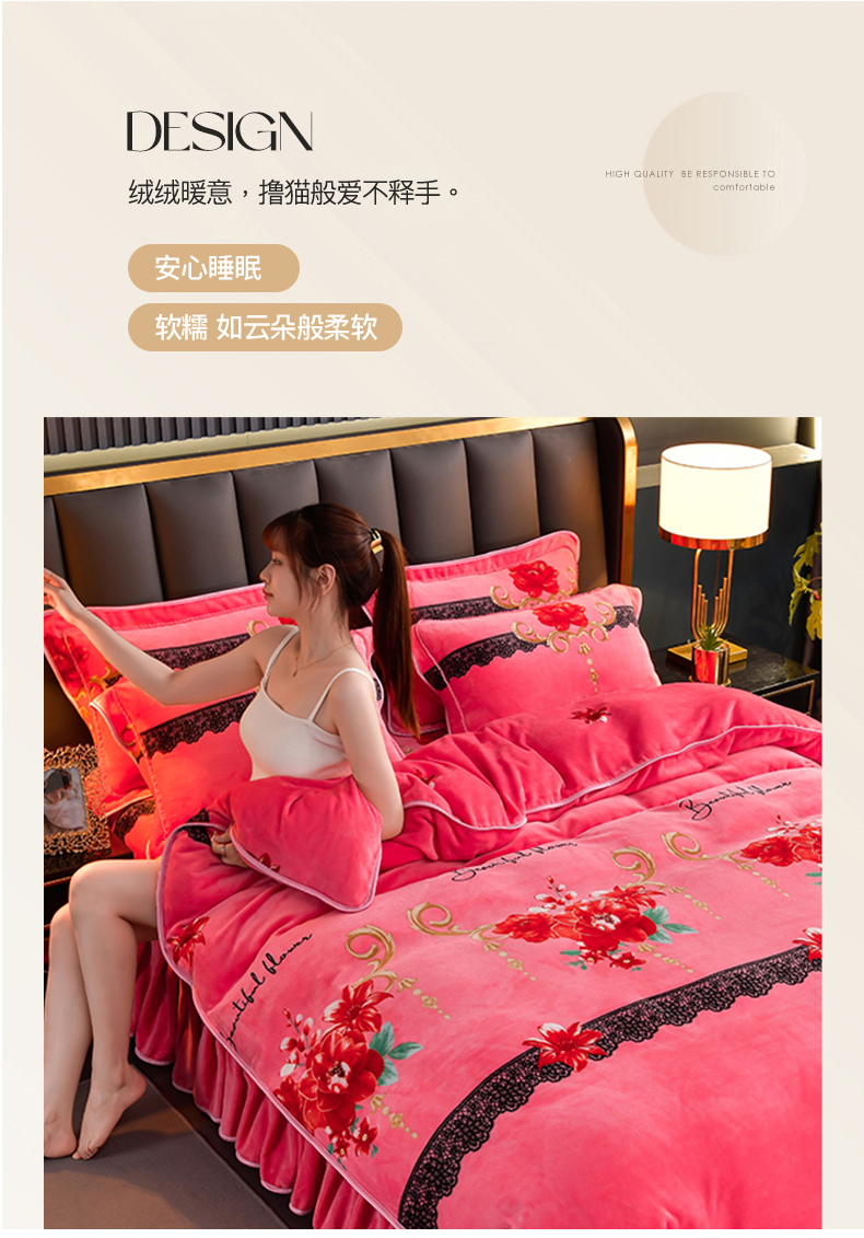 当前位置: 91家纺网 > 商品网购 > 床品套件 > 四件套 > 牛奶绒四件套 > 晚静 2025新款7斤牛奶绒四件套金貂法莱绒床裙款保暖绒三件套 爱恋粉