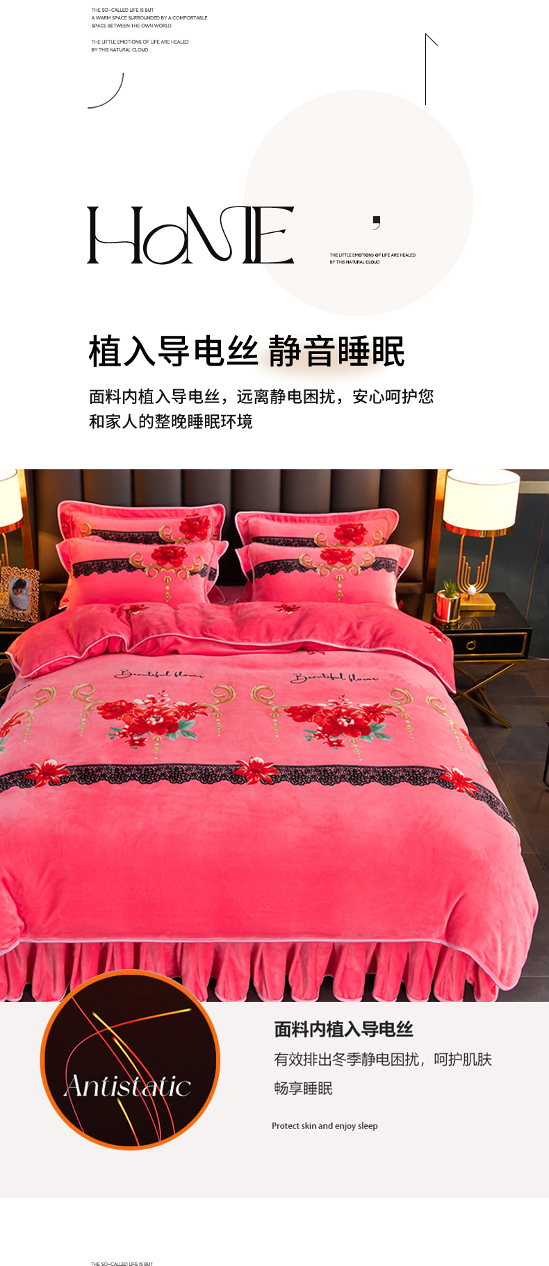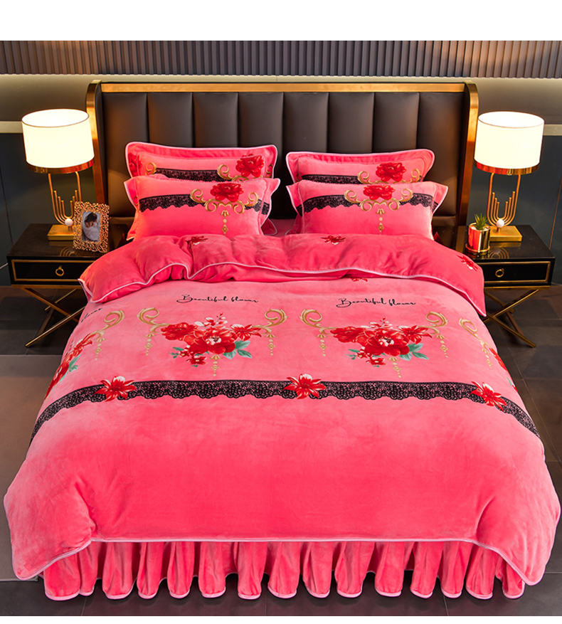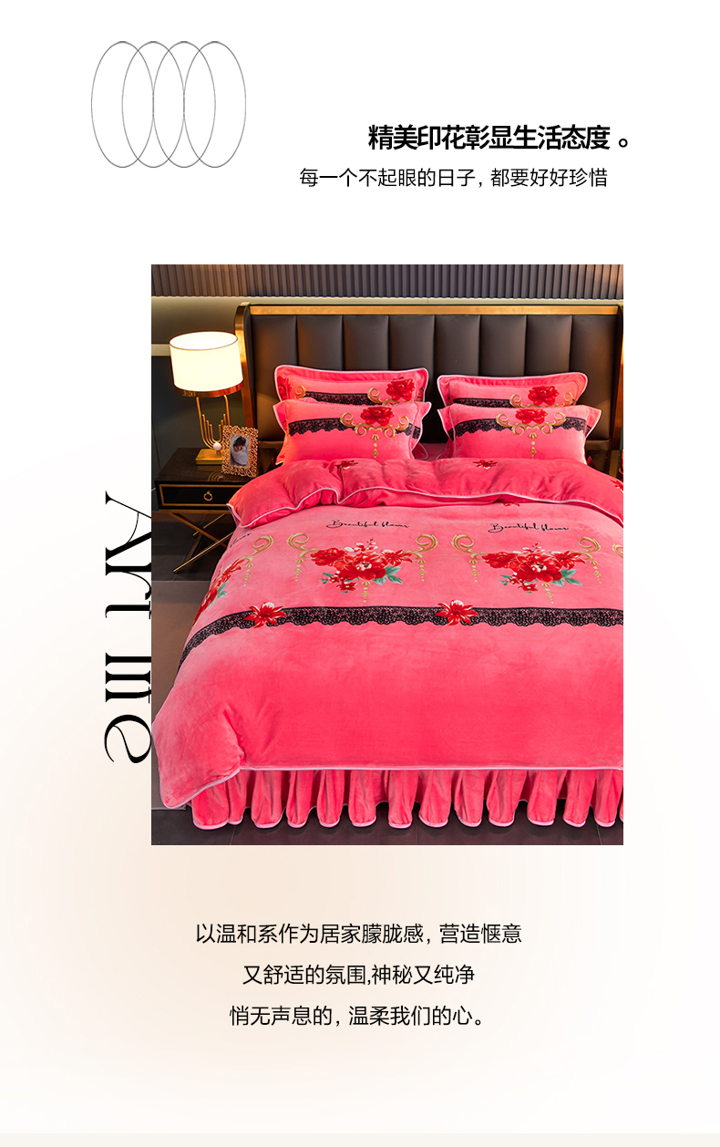 当前位置: 91家纺网 > 商品网购 > 床品套件 > 四件套 > 牛奶绒四件套 > 晚静 2025新款7斤牛奶绒四件套金貂法莱绒床裙款保暖绒三件套 爱恋粉