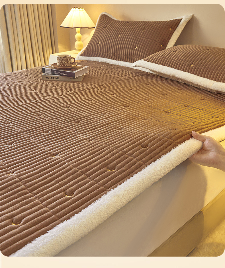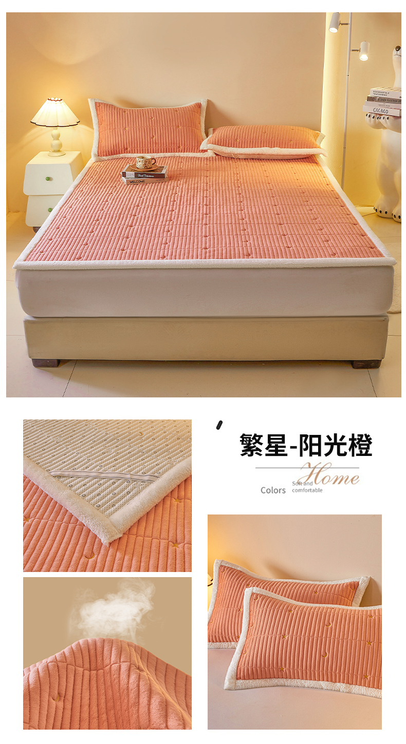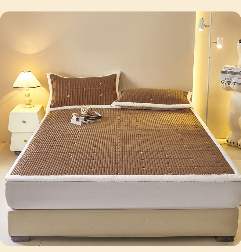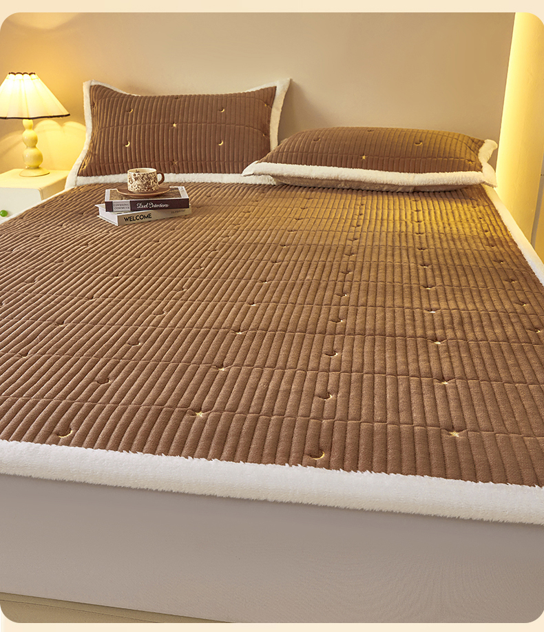• 91家纺网 家纺一手货源 找家纺 雯豆家纺 2025秋冬新款刺绣款夹棉床褥床垫床护垫绣花纯色垫子 繁星-深卡其