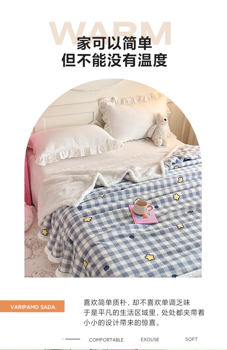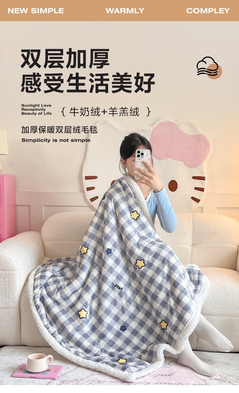 商品名称:川悦生活 2025新款牛奶绒羊羔绒毯子毛毯 毛毯简空星号