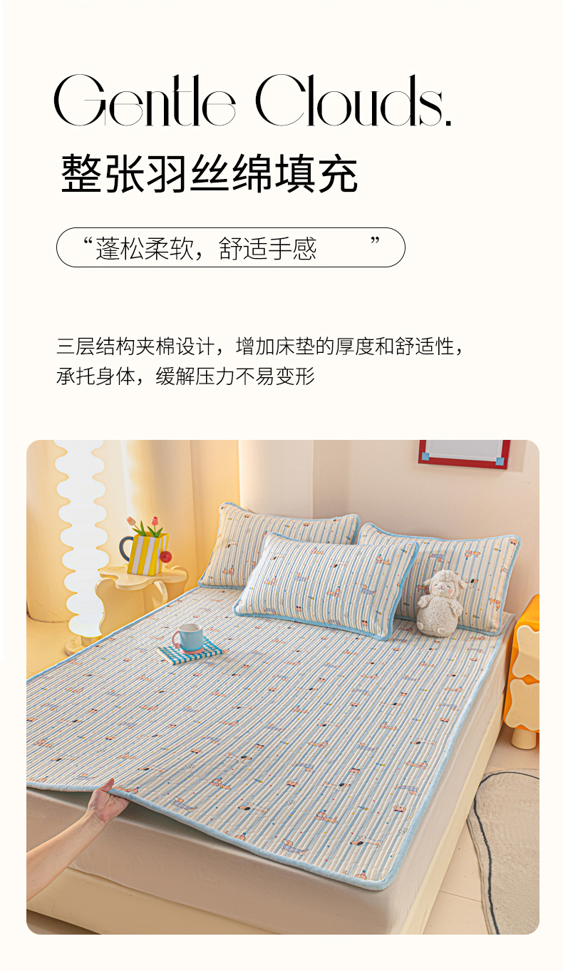 • 91家纺网 家纺一手货源 找家纺 恒尚居 2025新款A版全棉B版牛奶绒夹棉床褥垫A类四季可用学生床垫-秋冬款三件套系列一 机灵旺仔【A纯棉-B牛奶绒】