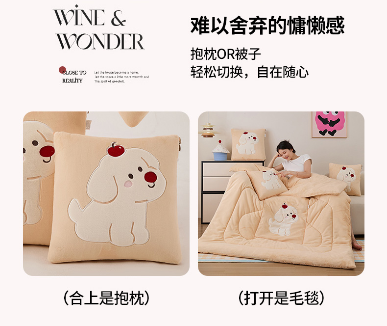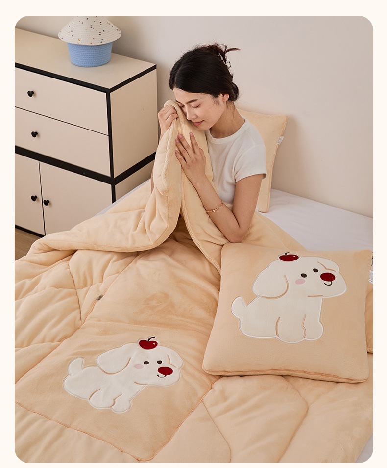 哩哩熊2025抱枕被子两用加厚牛奶绒二合一汽车载枕头办公室午睡毯子冬天靠枕-樱桃小狗 樱桃小狗-麦黄