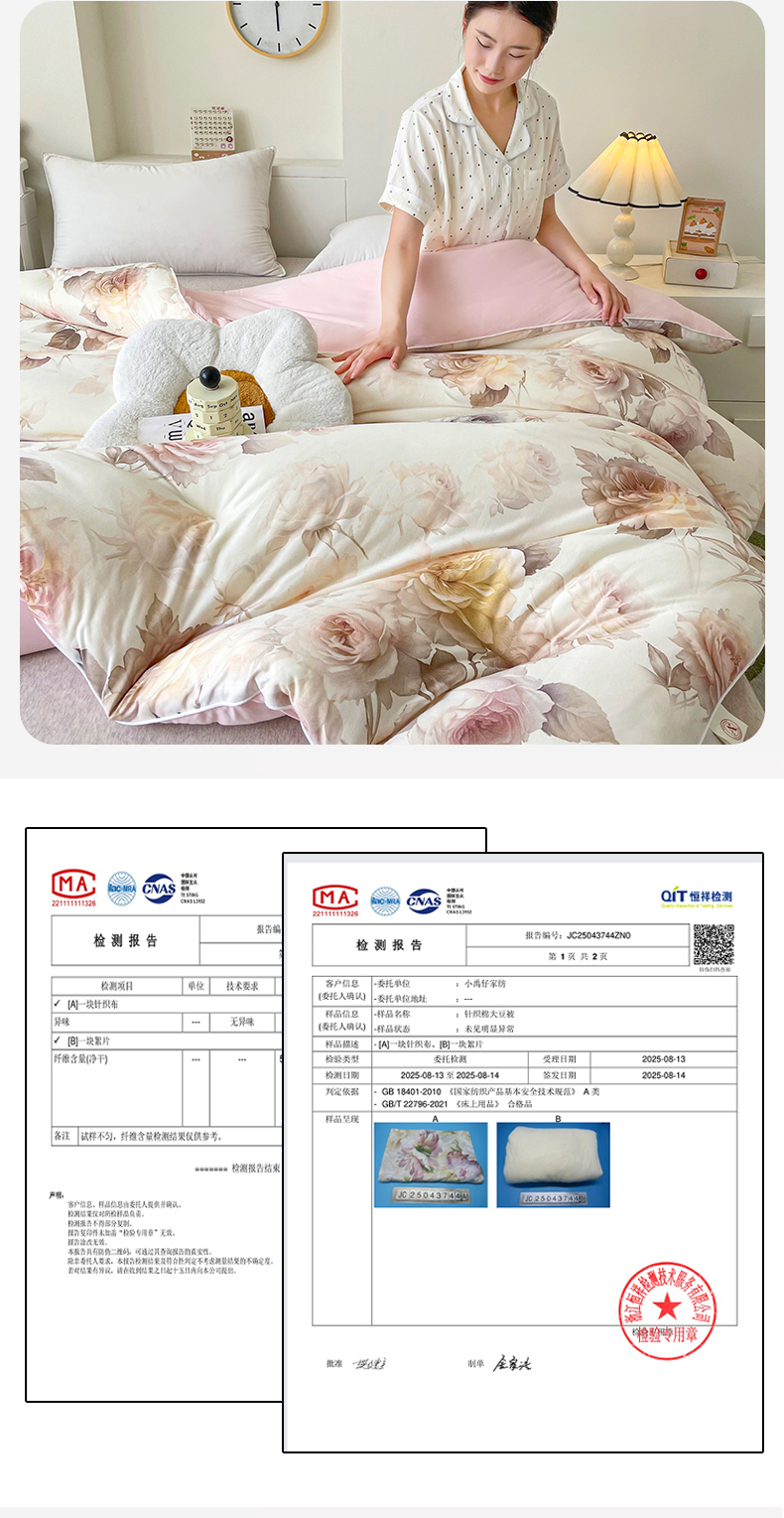 • 填充纤维种类: 大豆蛋白改性聚酯纤维