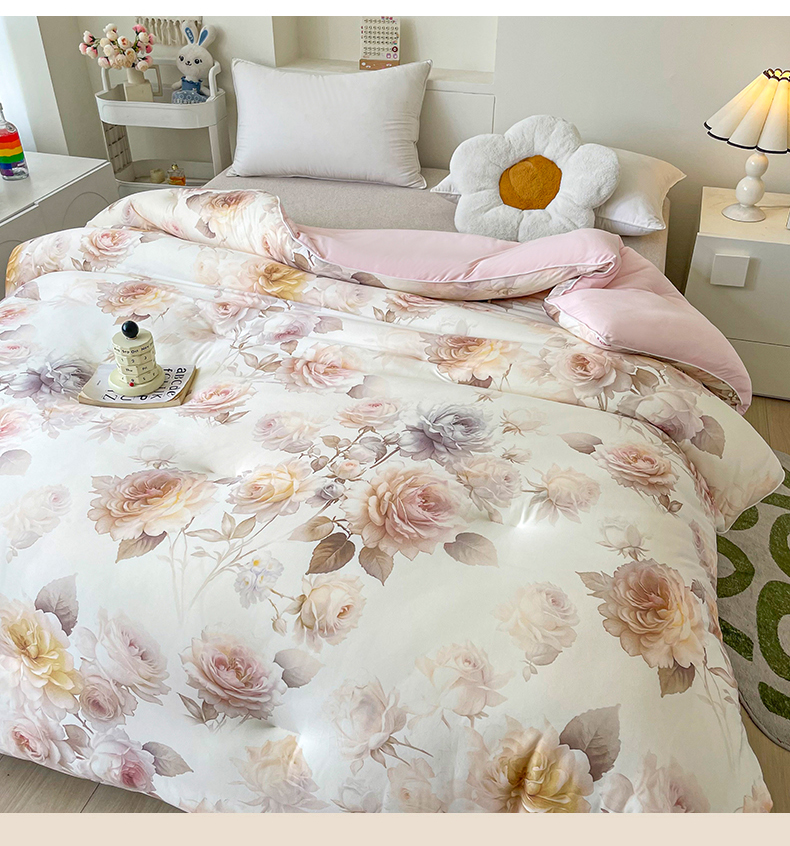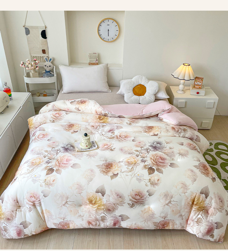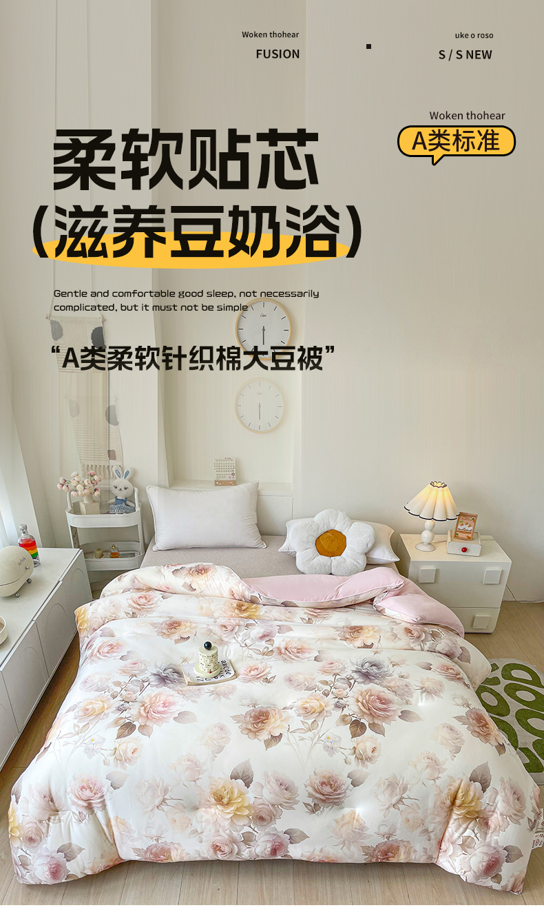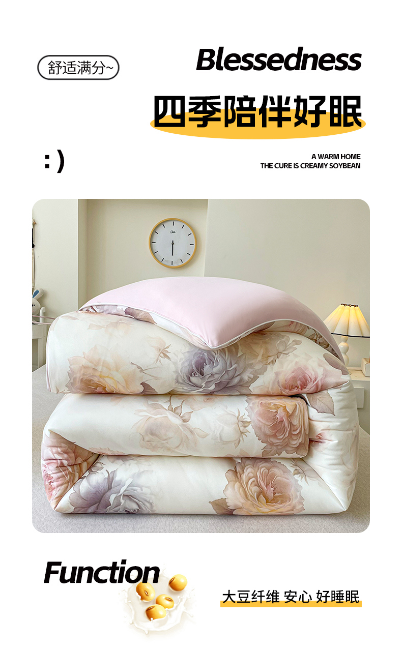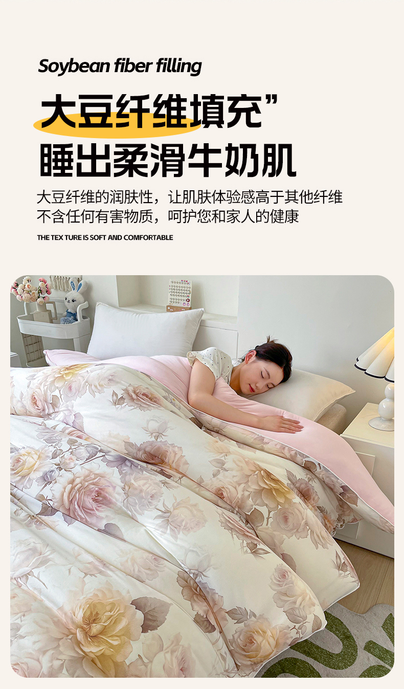 • 91家纺网 家纺一手货源 找家纺 小禹仔家纺  2025新款亲肤柔软大豆被数码印花针织棉大豆被冬被子被芯春秋被 恋薇时节粉,恋薇时节粉