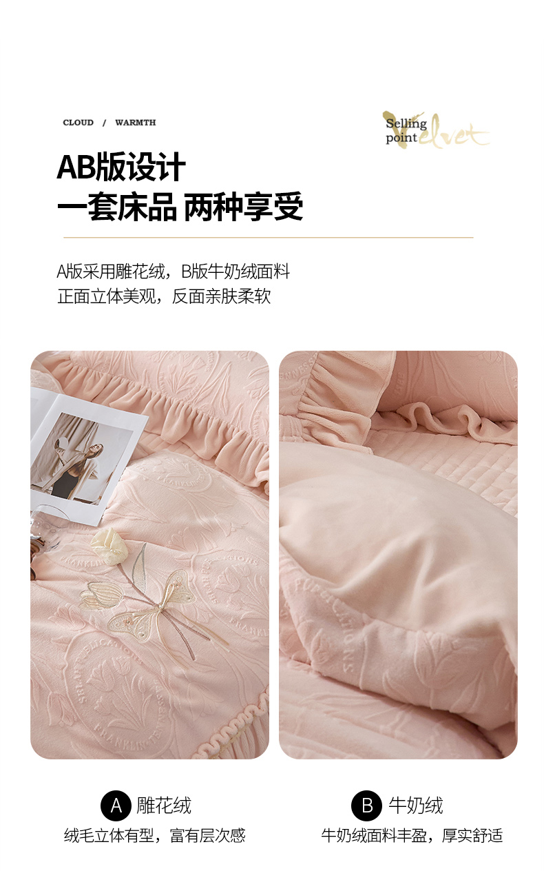 (总)金绣美居 2025新款加厚雕花牛奶绒床盖款四件套-郁金香(控价不低于219/229),郁金香-湖水蓝,郁金香-新媚紫,郁金香-玉色