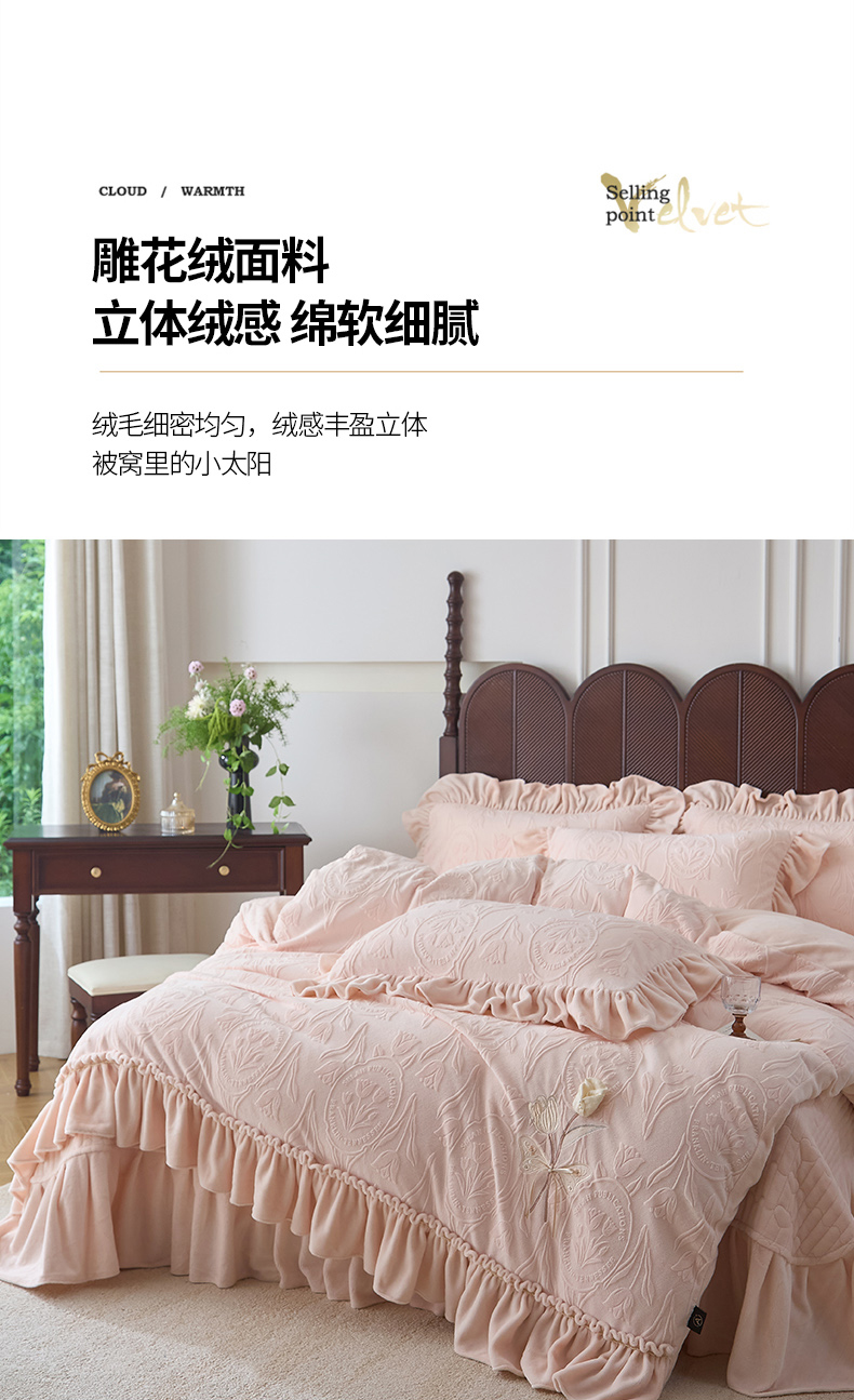 (总)金绣美居 2025新款加厚雕花牛奶绒床盖款四件套-郁金香(控价不低于219/229)