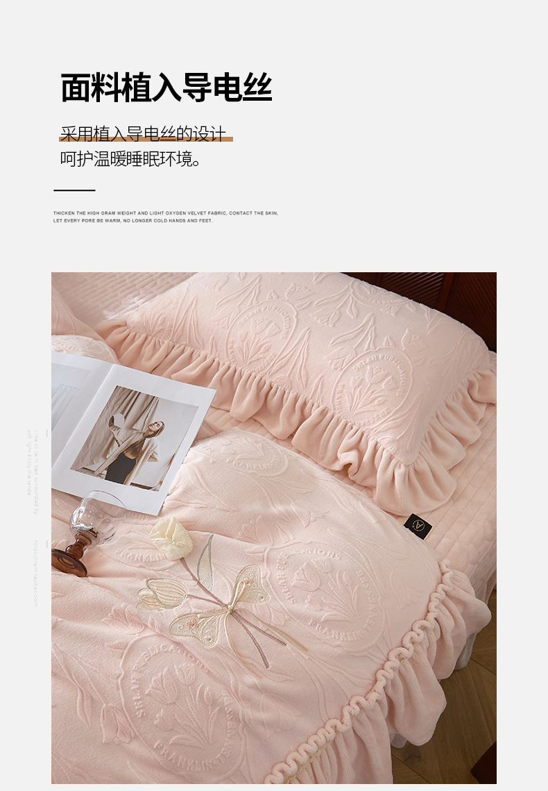 (总)金绣美居 2025新款卡通贴布绣款牛奶绒四件套-公主,公主粉,公主蓝