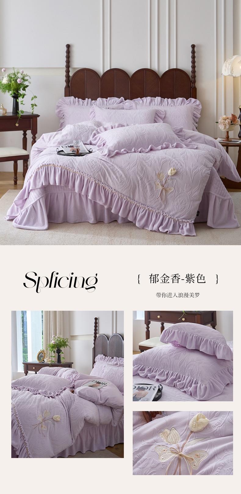 (总)金绣美居 2025新款加厚牛奶绒韩版床盖款绣花手工花保暖四件套-花弄影,花弄影-牛奶粉,花弄影-浅湖蓝,花弄影-新媚紫,花弄影-奶昔色