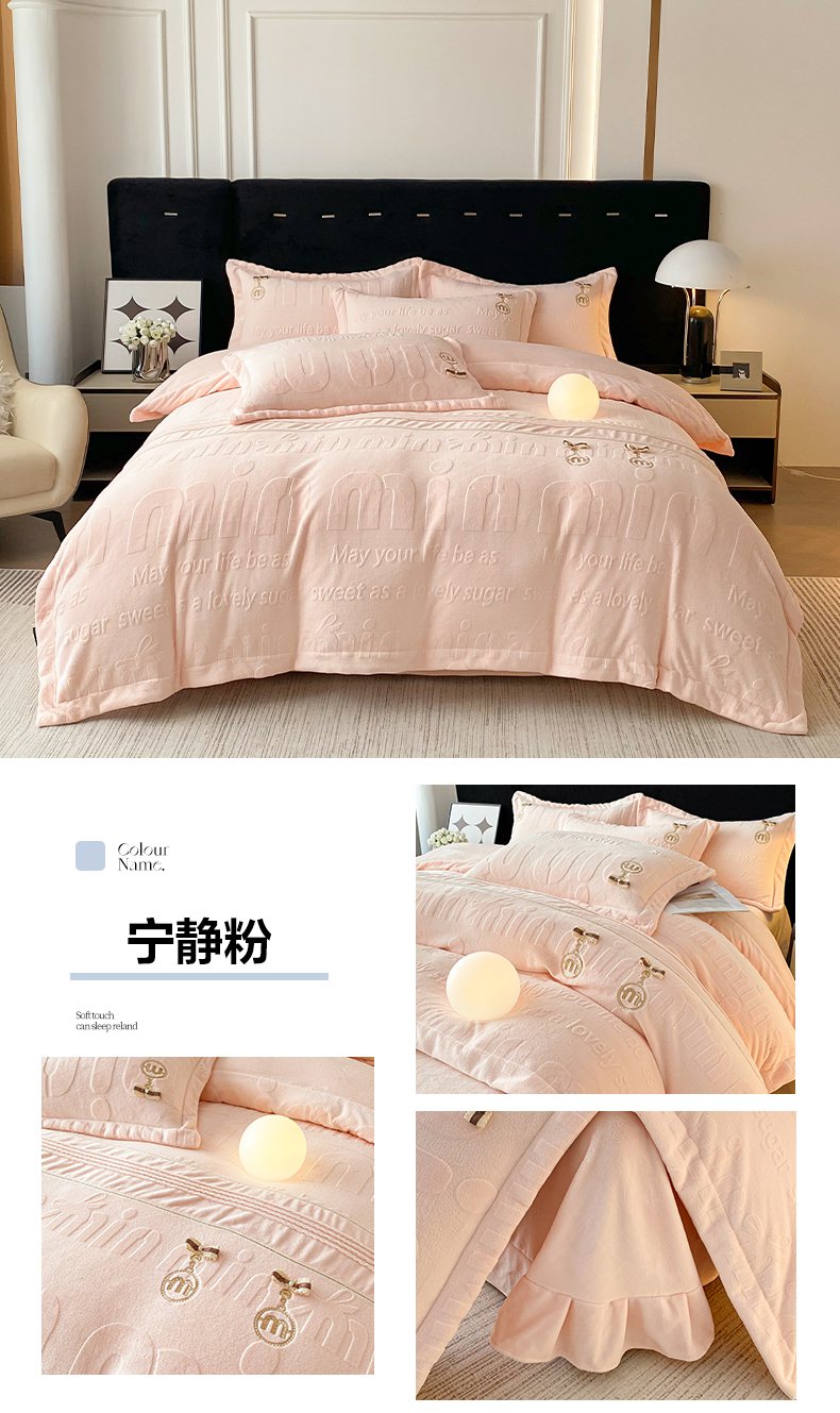 当前位置: 91家纺网 > 商品网购 > 床品套件 > 四件套 > 牛奶绒四件套 > 卢赛尔 2025新款法式轻奢全消光牛奶绒雕花打裥刺绣贴布绣MIU四件套-缪斯(带包装) 缪斯-静谧紫