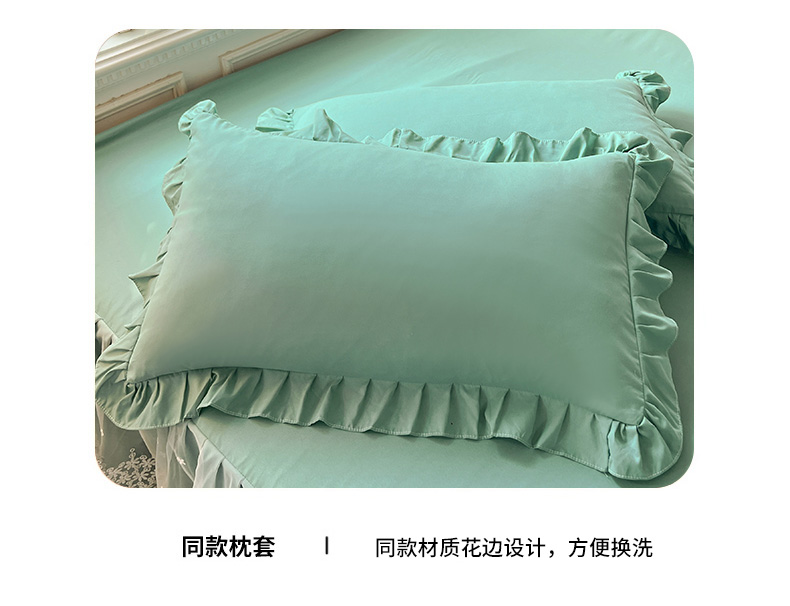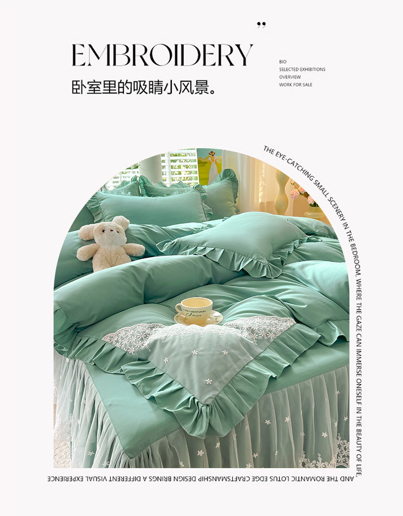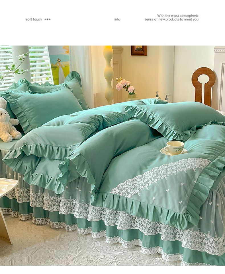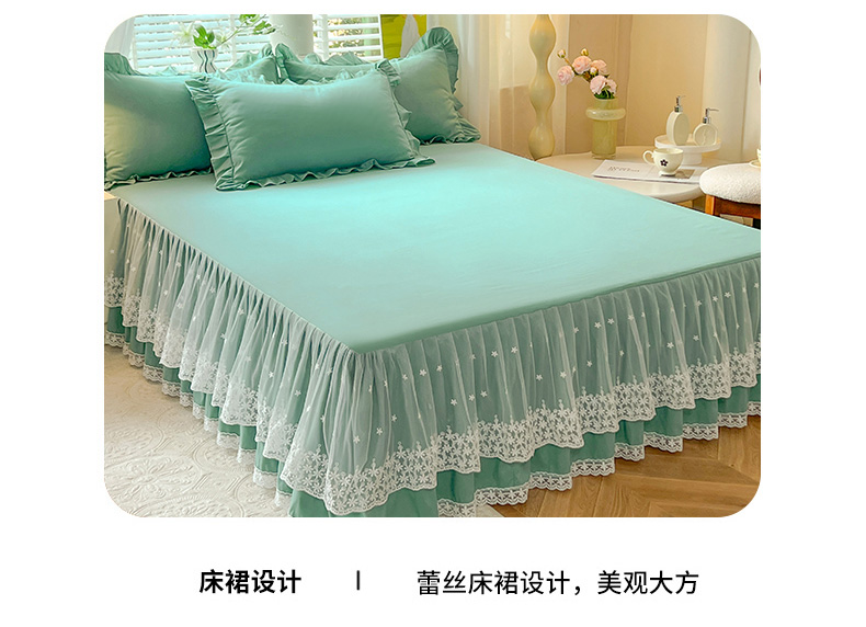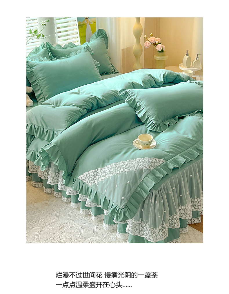 商品名称:后庭寝室 2025新款柔软亲肤花边蕾丝床裙四件套-花颜系列 花颜-绿色