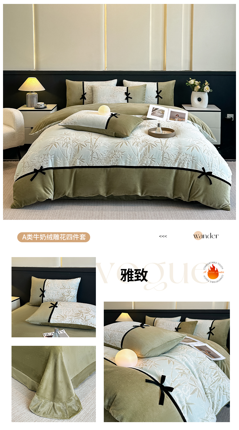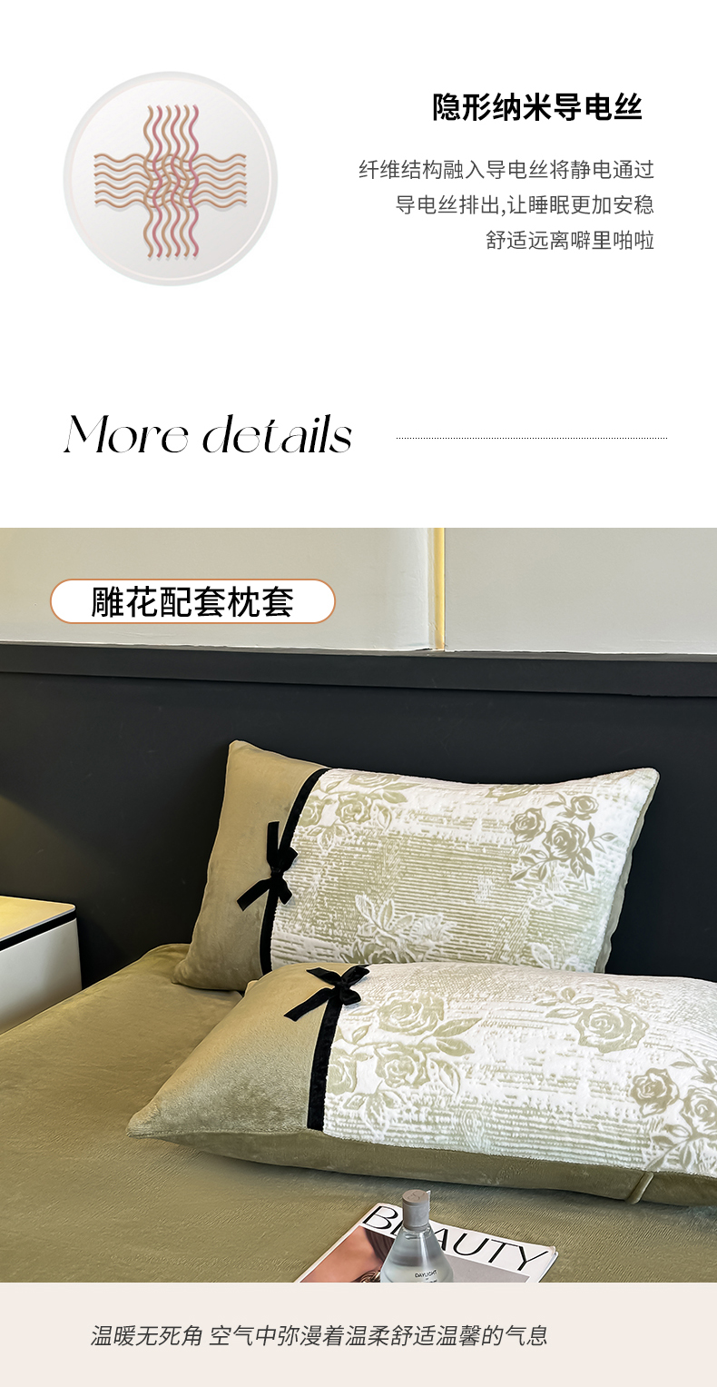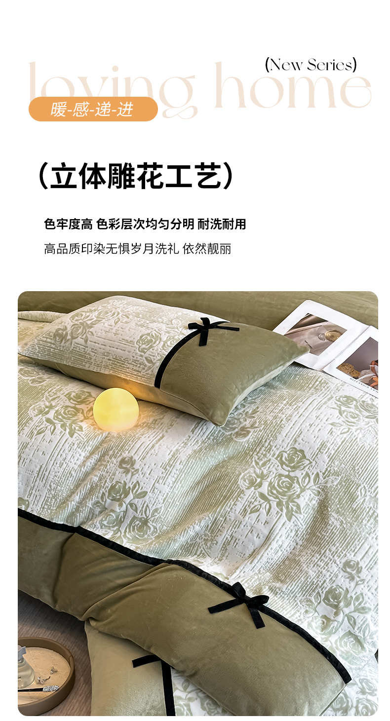 当前位置: 91家纺网 > 商品网购 > 床品套件 > 四件套 > 牛奶绒四件套 > 凯美家居 2025新款A类雕花牛奶绒四件套-美拉德系列 小岛蔷薇 绿