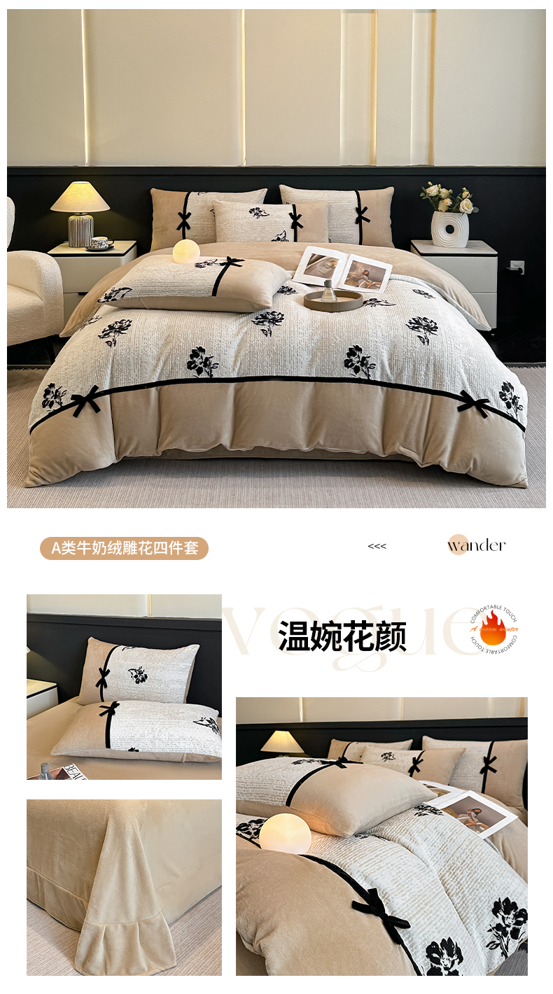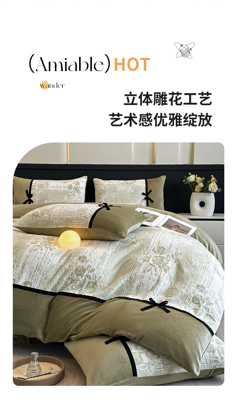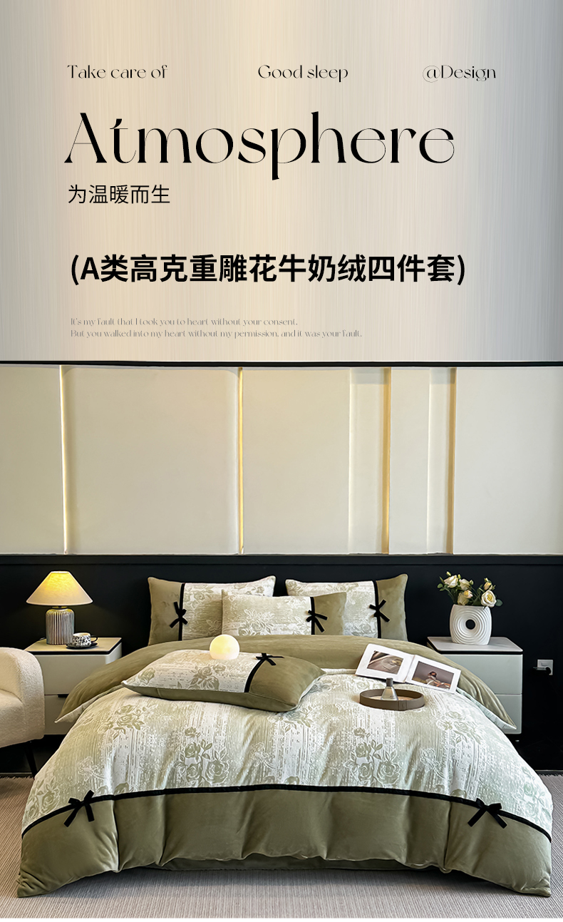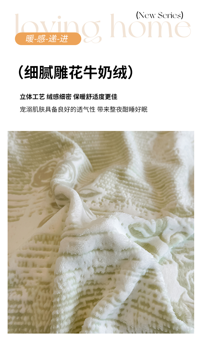 当前位置: 91家纺网 > 商品网购 > 床品套件 > 四件套 > 牛奶绒四件套 > 凯美家居 2025新款A类雕花牛奶绒四件套-美拉德系列 小岛蔷薇 绿