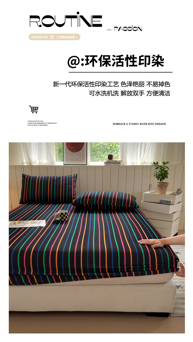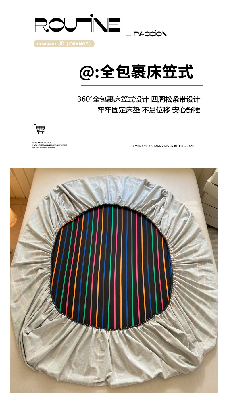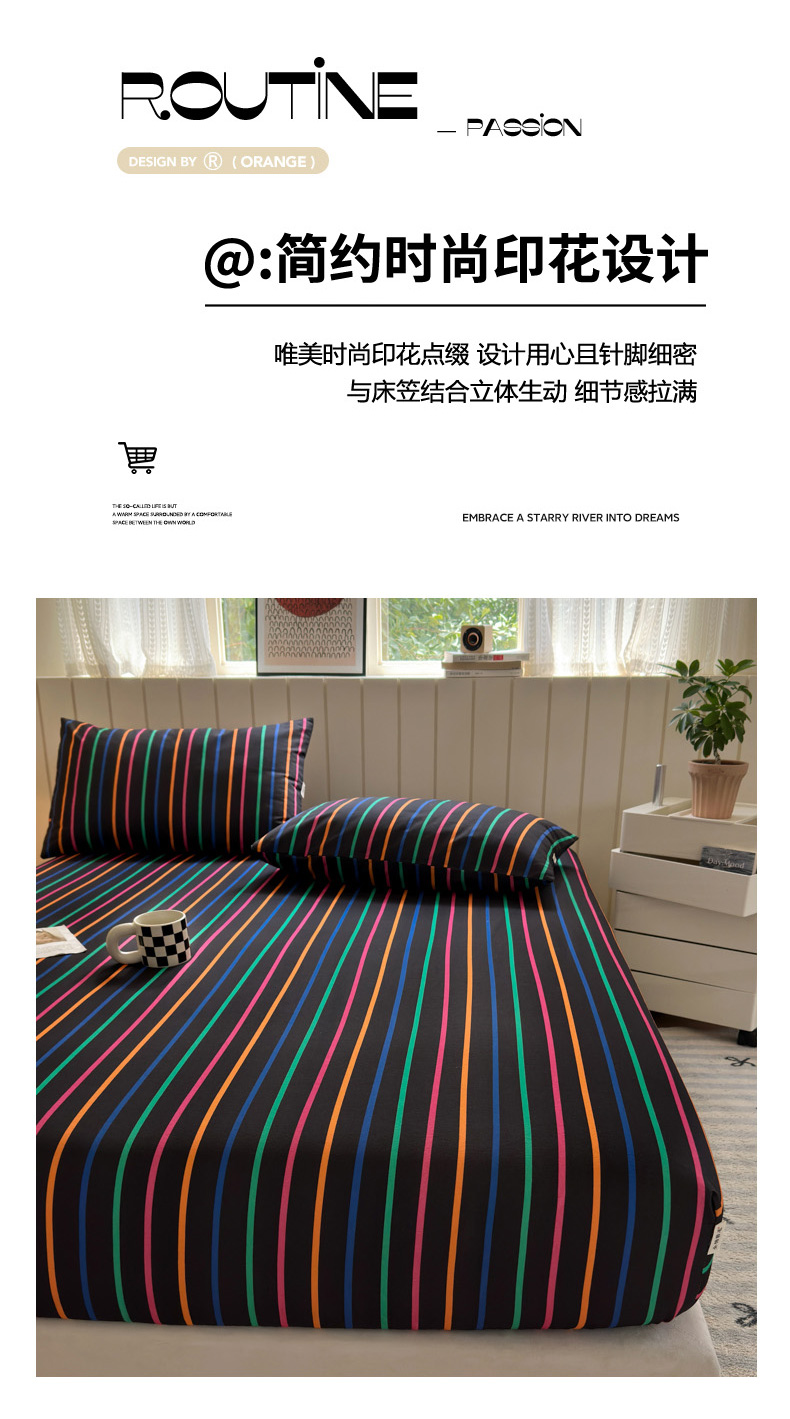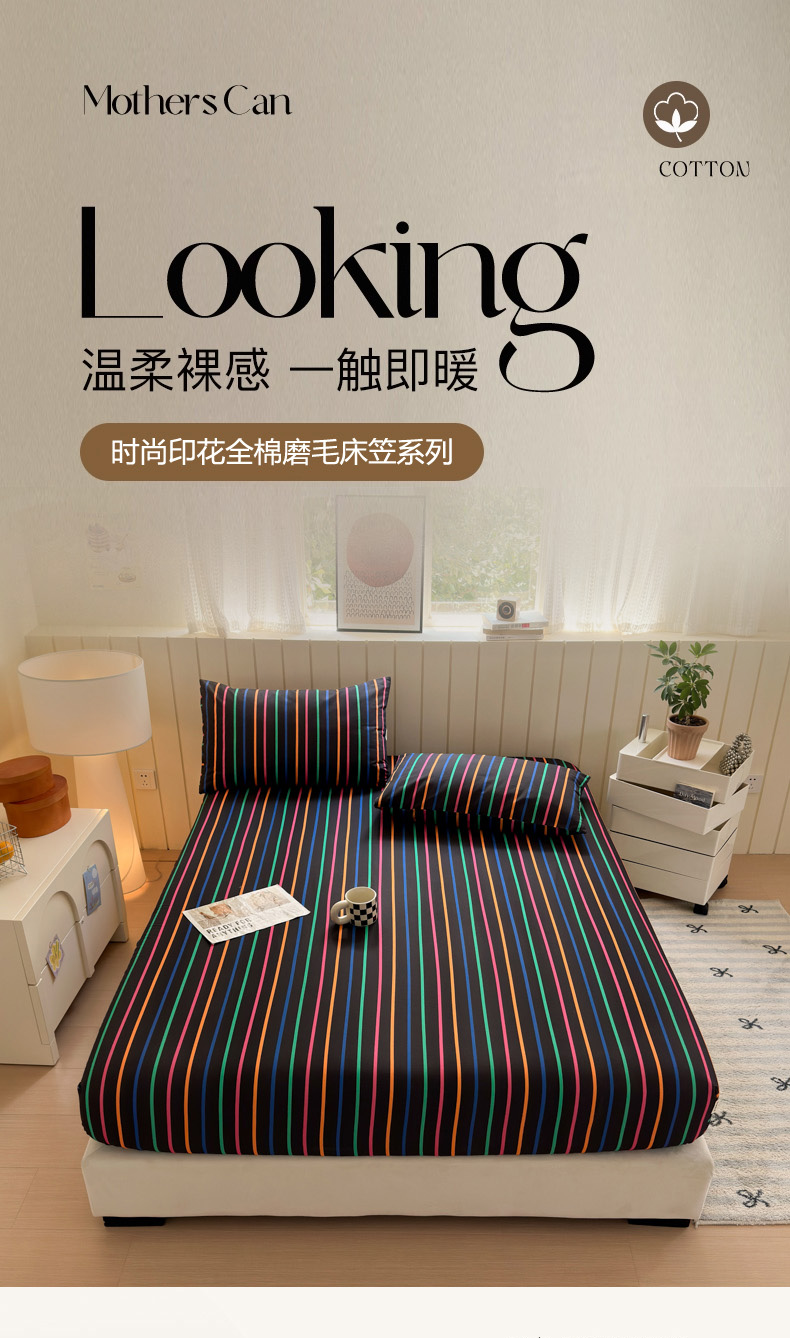 如意朵 2025新款时尚印花全棉加厚磨毛床笠 多彩-黑