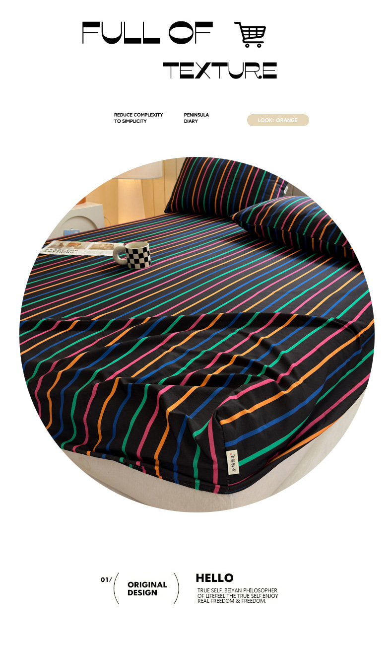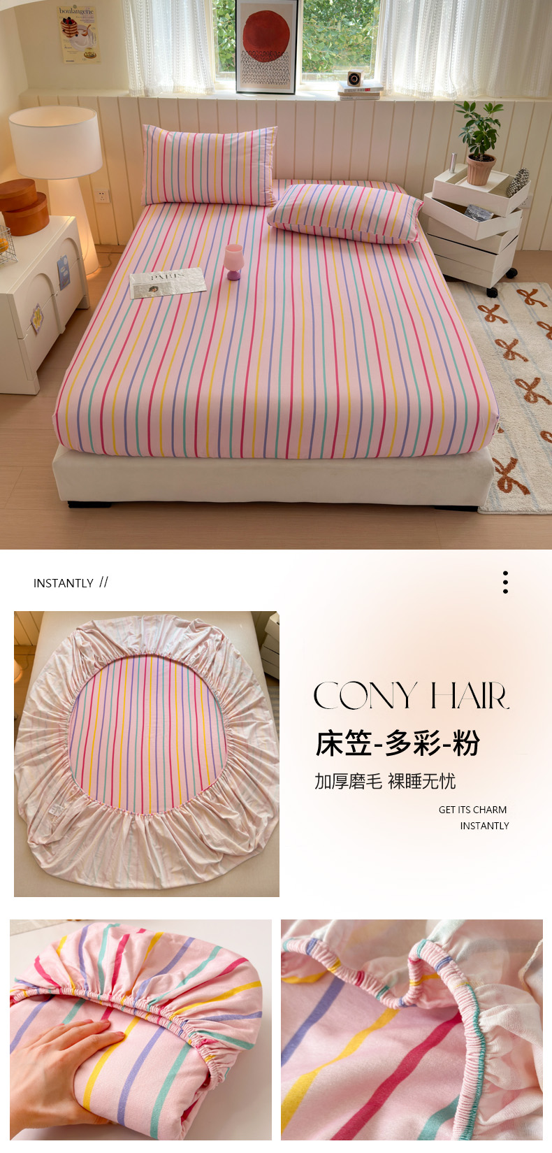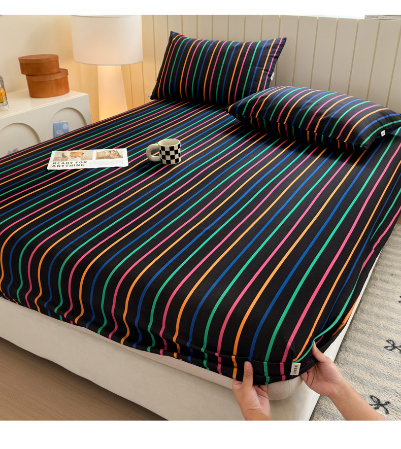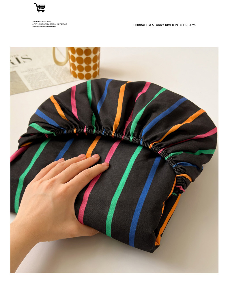 如意朵 2025新款时尚印花全棉加厚磨毛床笠 多彩-黑