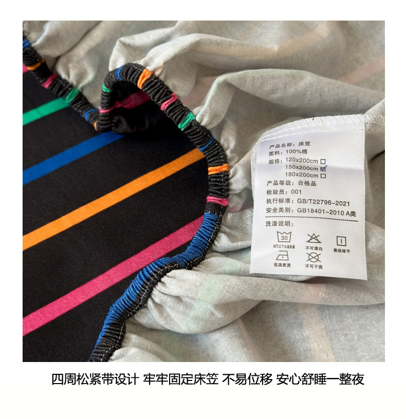 商品名称:如意朵 2025新款时尚印花全棉加厚磨毛床笠 多彩-黑