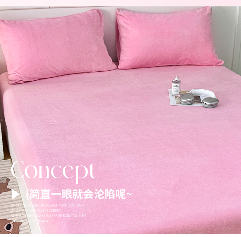 • 91家纺网 家纺一手货源 找家纺 (总)觅妮家纺 2025新款全消光200g保暖牛奶绒纯色简约款床笠,芭比粉,宾利蓝,果绿,黑灰,灰色,咖色,浅粉,浅灰,雾霾蓝