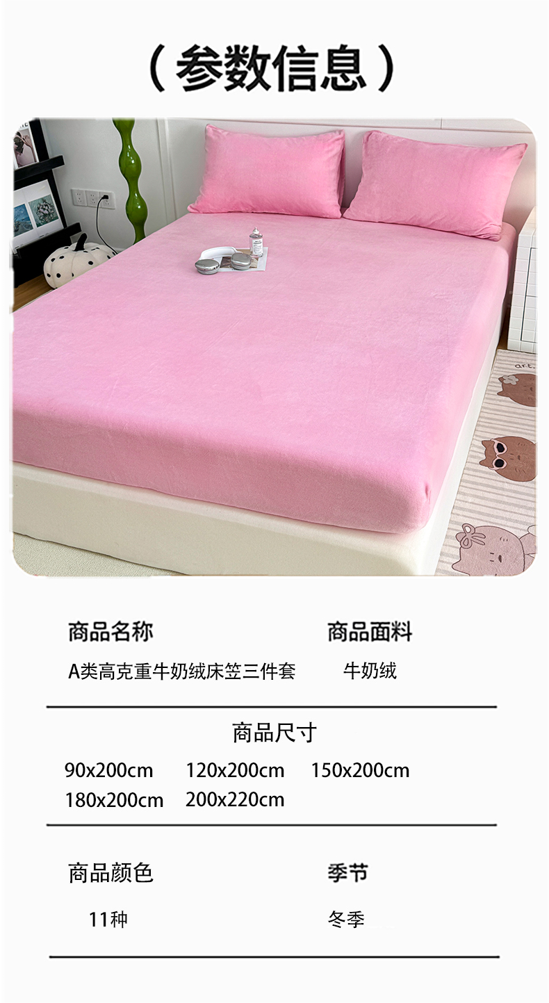 (总)觅妮家纺 2025新款200g牛奶绒床笠外贸跨境电商亚马逊速卖通床笠三件套欧美跨境平台TEMU SHE,芭比粉,宾利蓝,璀璨洋红,果绿,黑色,湖蓝,灰色,咖色,浅粉,浅灰,雾霾蓝