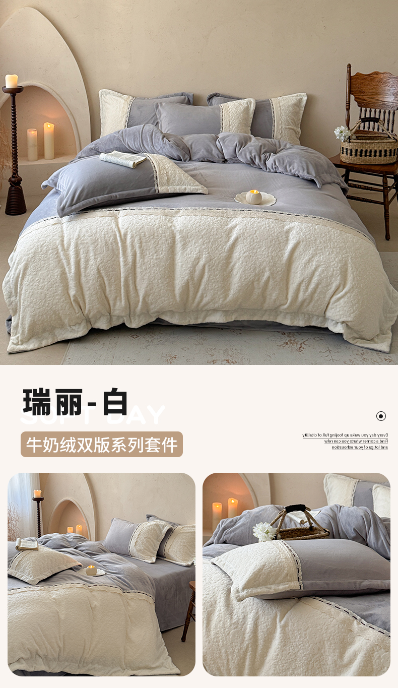 当前位置: 91家纺网 > 商品网购 > 床品套件 > 四件套 > 牛奶绒四件套 > 优悦生活馆 2025新款牛奶绒纯色双拼四件套-瑞丽 瑞丽-白
