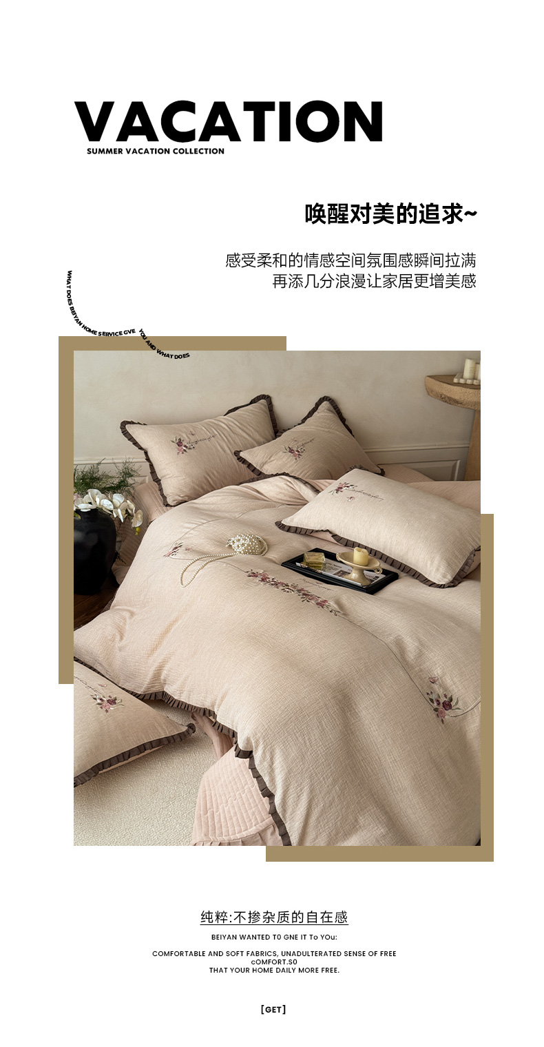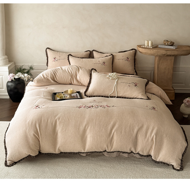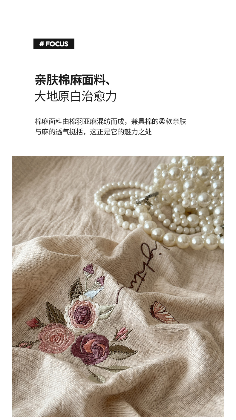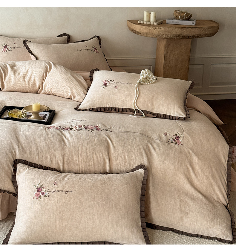(总)艾唯希家纺 2025新款全棉复古棉麻工艺四件套纯棉-晚风玫瑰系列,晚风玫瑰-淡粉,晚风玫瑰-原麻色