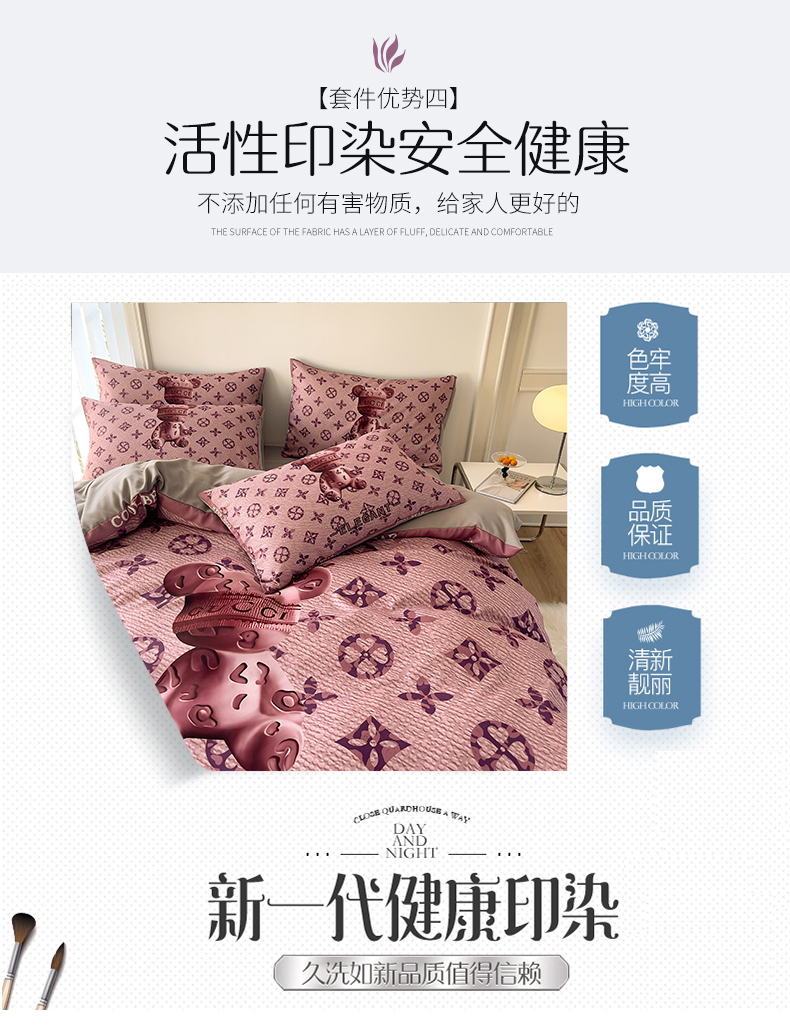(总)摩卡(乐趣) 2024新款亲肤全棉网红轻奢四件套,H马,大H,粉红兔,黑白迪,黑白V,黑双C,咖古,咖色熊,蓝咖熊,毛绒熊,趴趴熊,七彩迪,小楂花,萌兔