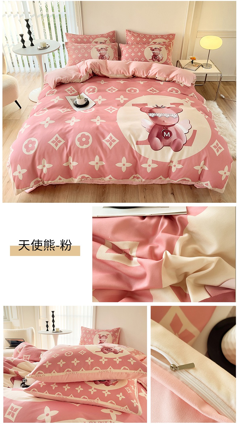 (总)摩卡(乐趣) 2025秋冬新品网红款水洗棉四季款四件套,豹纹熊-粉,豹纹熊-绿,彩虹兔,公仔蓝,梦幻粉,梦幻蓝,棋盘格公仔,太阳花粉,天使熊-粉,天使熊-咖,小熊头,熊头白,熊头橙,熊头咖,熊仔白