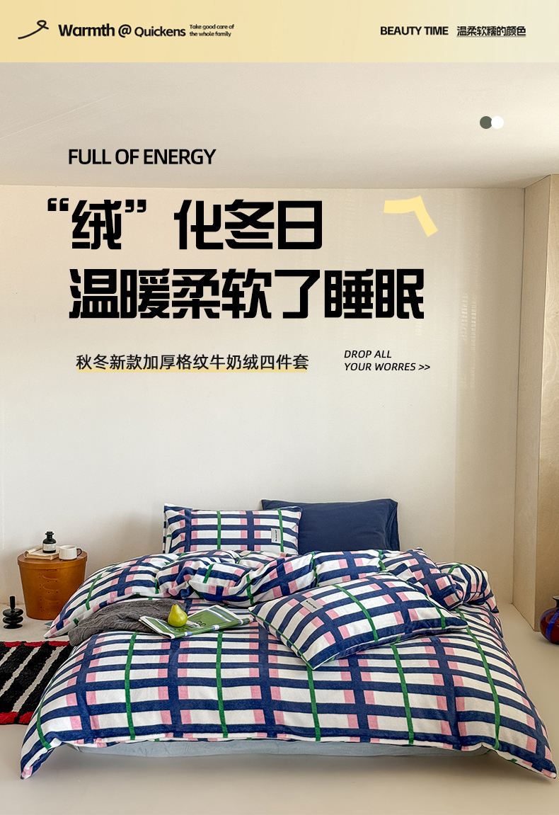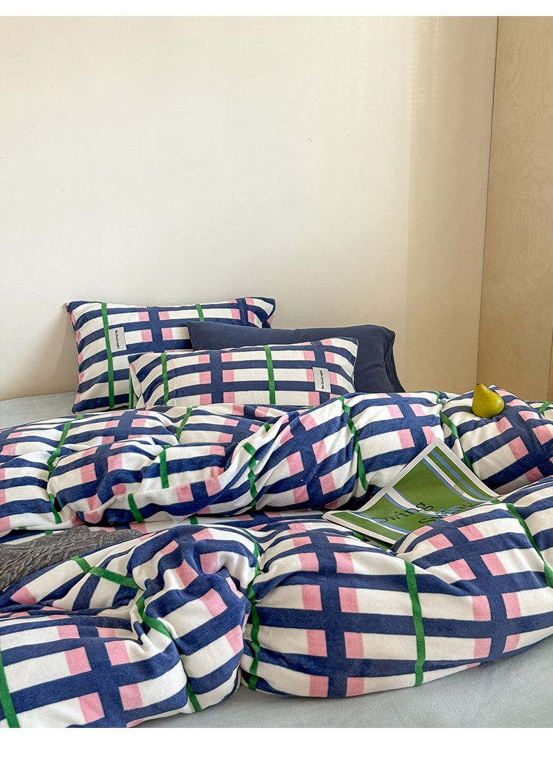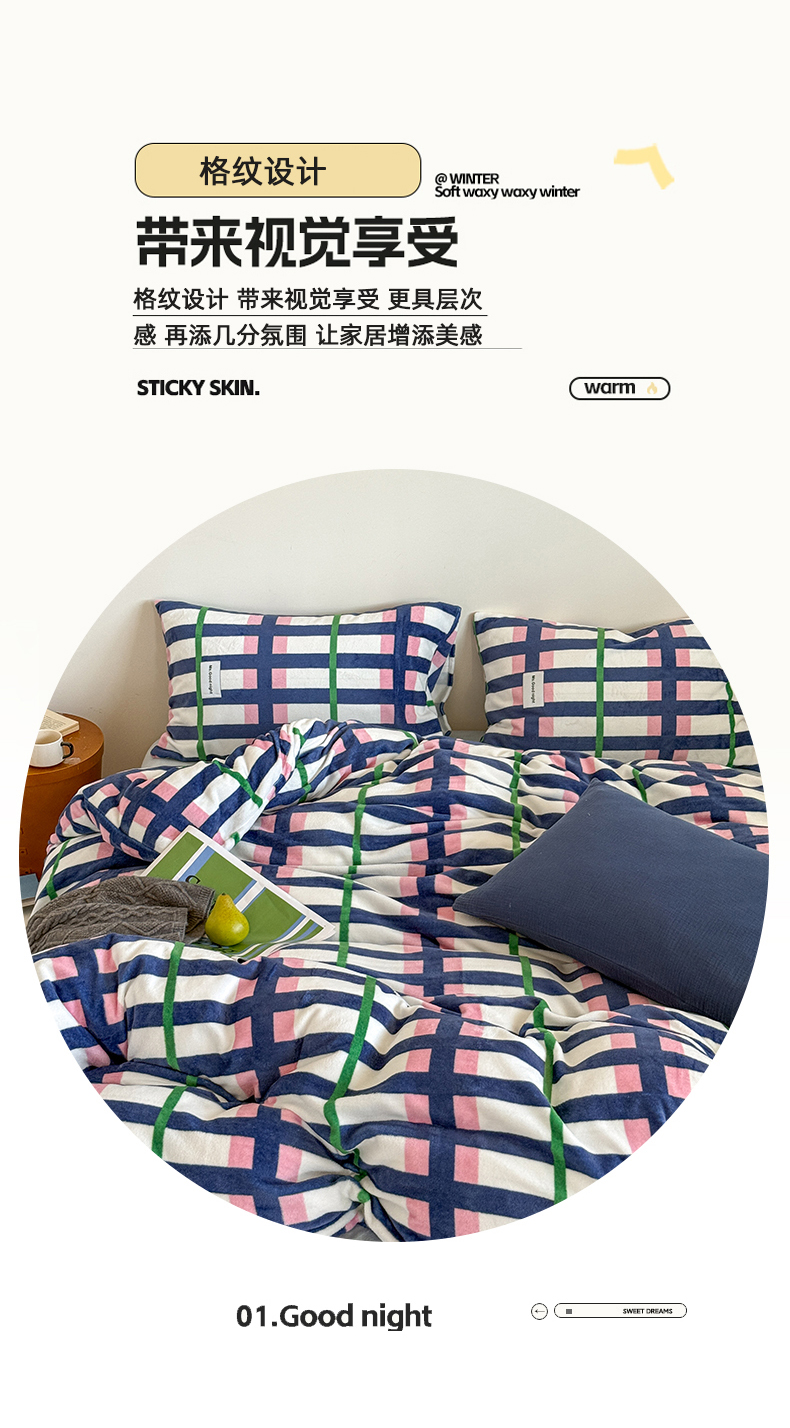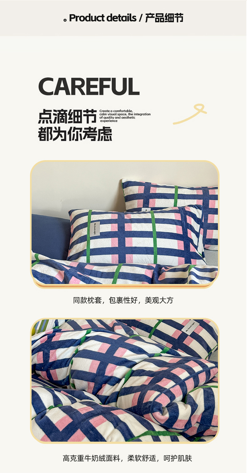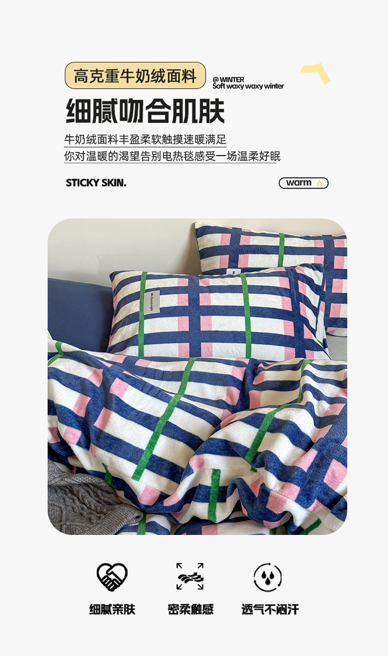 当前位置: 91家纺网 > 商品网购 > 床品套件 > 四件套 > 牛奶绒四件套 > 蜜宿 2025新款全工艺加厚牛奶绒四件套-格纹款 盐系可露丽