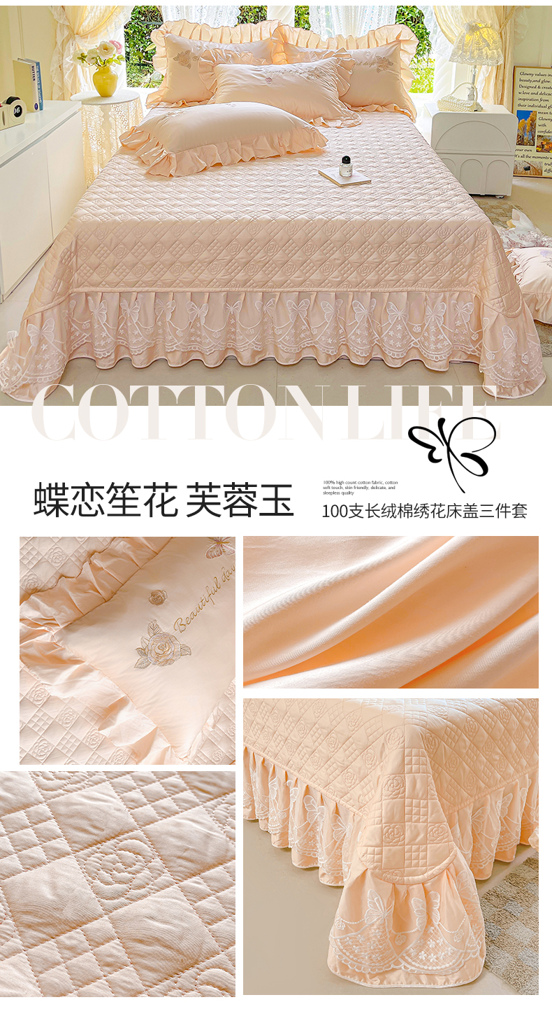 (总)宜凡家纺 2025新款全棉双层纱夹棉床盖三件套,蝴蝶花丛,阳春三月,缤纷蝴蝶结,波点蝴蝶结-米白,波点蝴蝶结-深粉,潮汐花屿,多彩草莓,芳菲花镜,河畔花梦,蝴蝶纷飞,花影枝梦,梦幻樱桃,田园樱桃