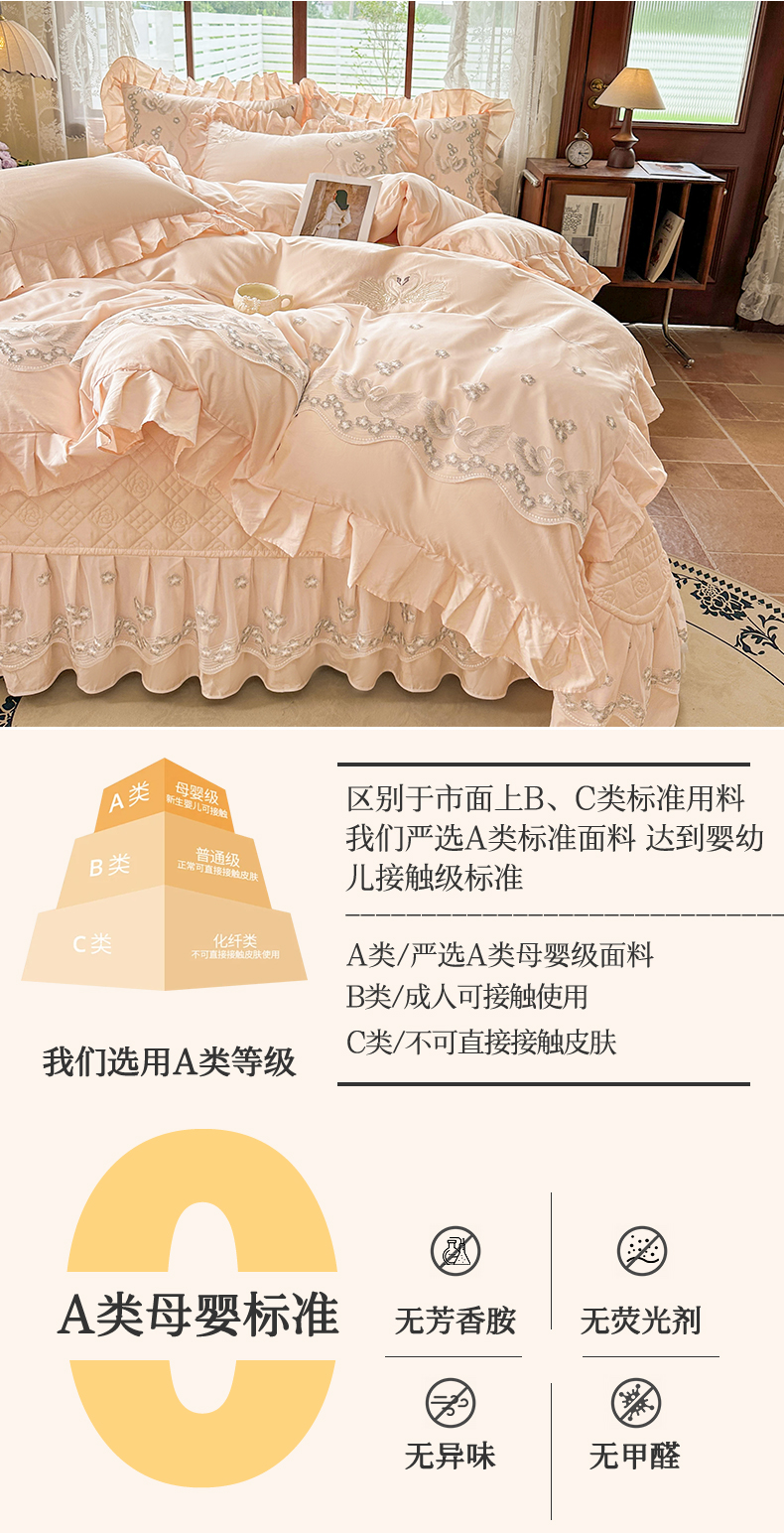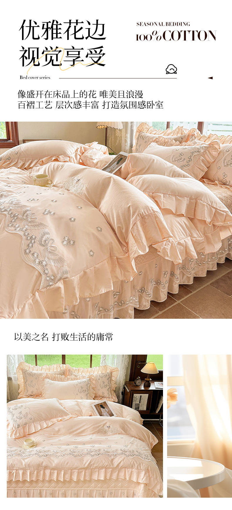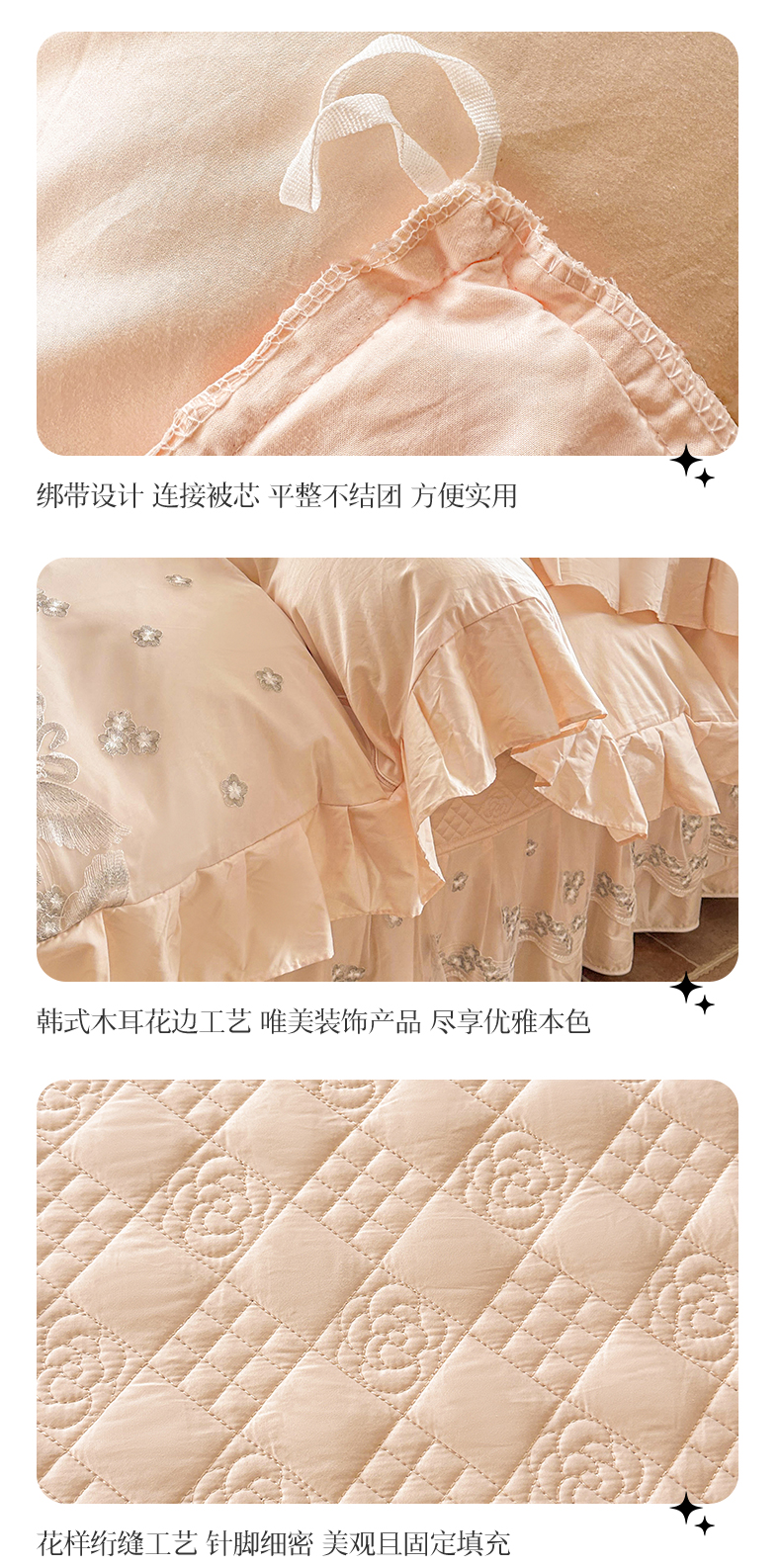 (总)宜凡家纺 2025新款牛奶绒雕花拼接刺绣床裙四件套,晨雾蔷薇,蝶恋花语,花野漫屿,蕾丝蝶音,洛可可影,雾蓝漫织,香槟漫月