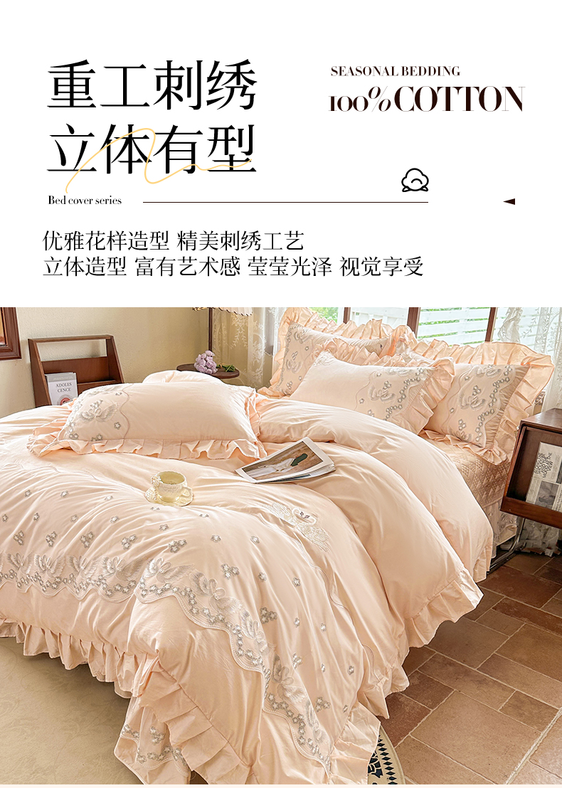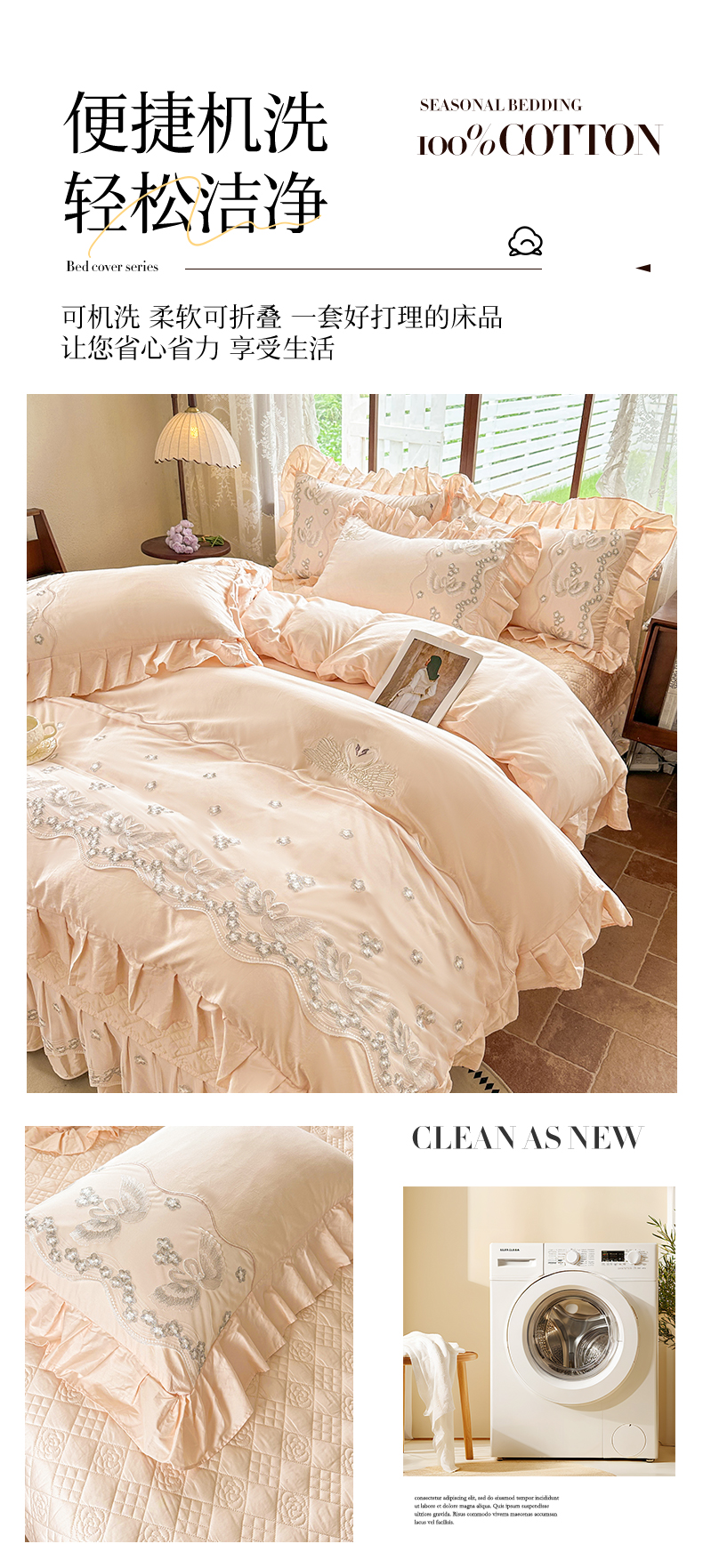 商品名称:(总)宜凡家纺 2025新款长绒棉绣花夹棉床盖四件套--天鹅之吻系列