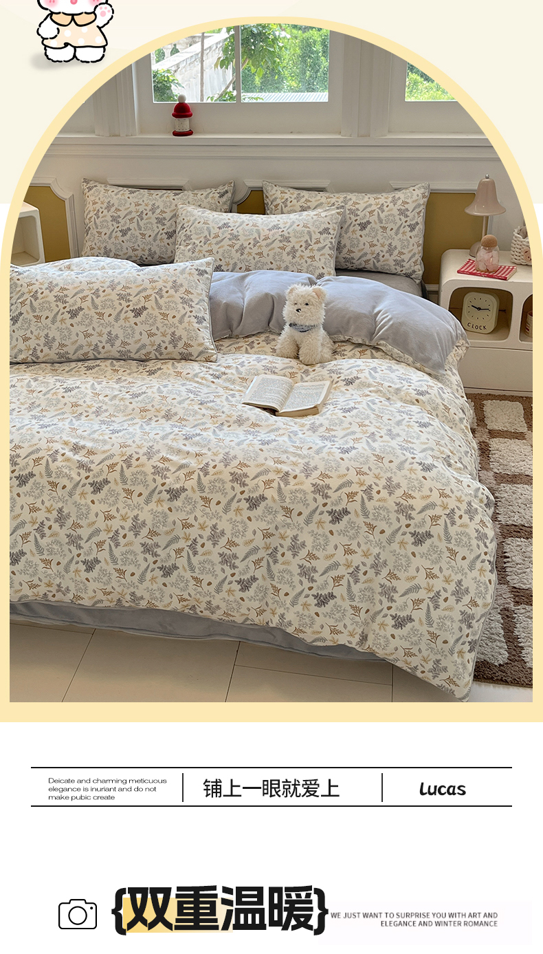 (总)羚羊语家纺 2025新款灯芯绒 温暖颂系列-印花牛奶绒四件套高克重简约卡通花卉提花加厚保暖床单床笠三件套(买家秀请联系客服!),温暖颂-宠物乐园,温暖颂-漫野春息,温暖颂-初绽,温暖颂-樱桃日记,温暖颂-花间兔,温暖颂-叶知秋,温暖颂-卡皮小布,温暖颂-小熊奇遇,温暖颂-兔儿啵啵