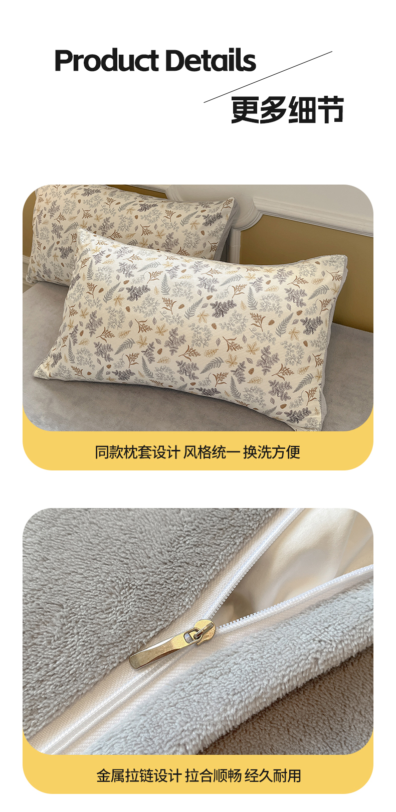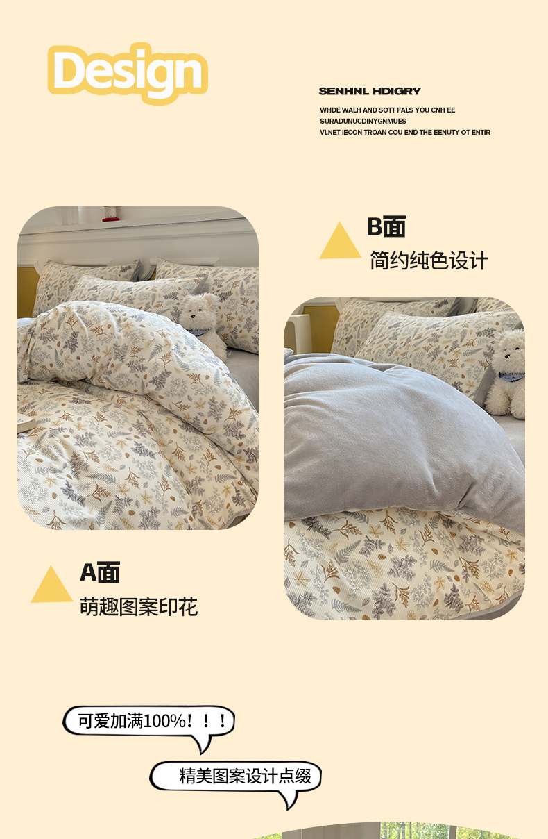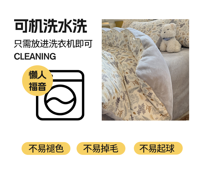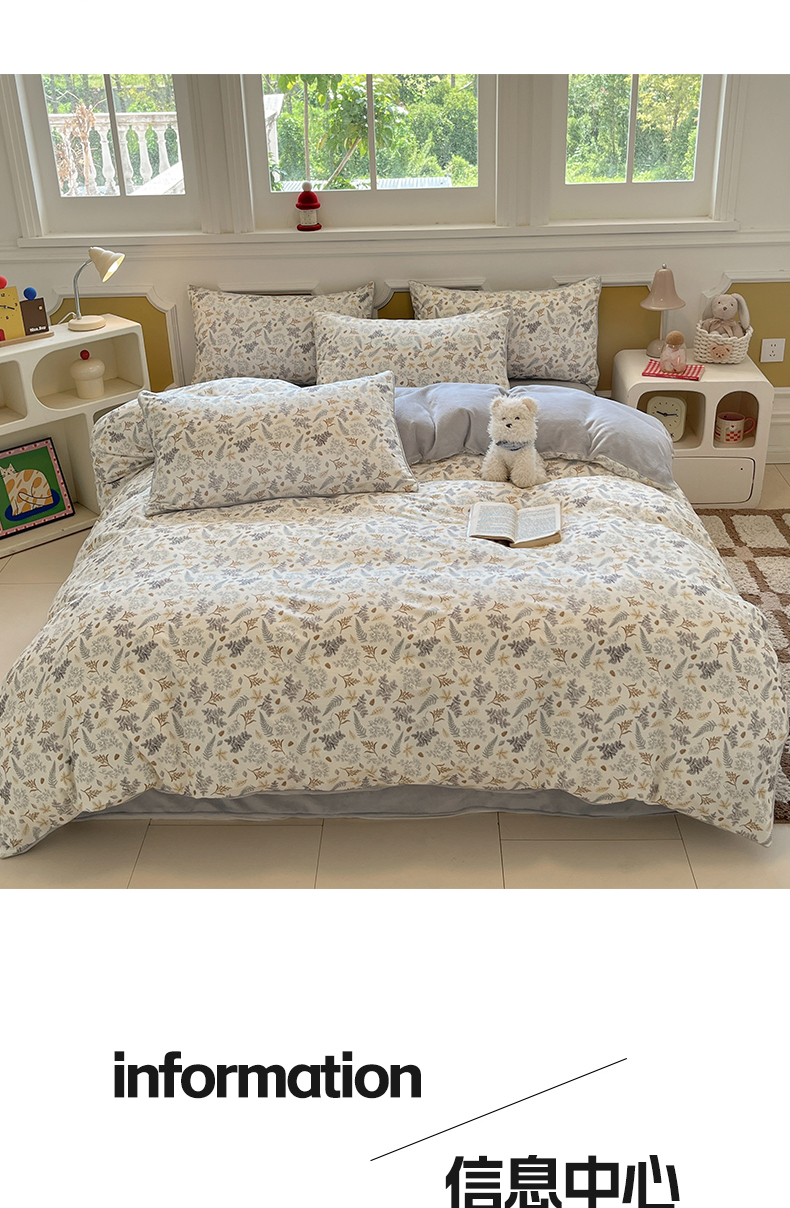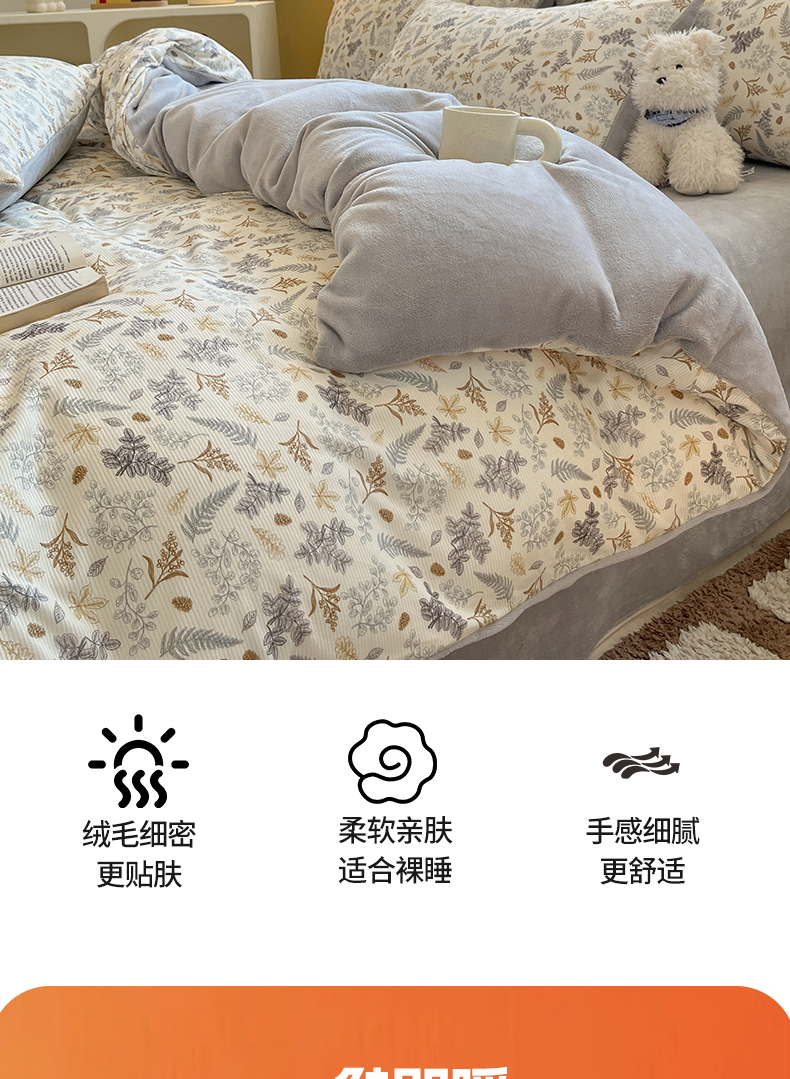 商品名称:羚羊语家纺 2025新款灯芯绒 温暖颂系列-印花牛奶绒四件套高克重简约卡通花卉提花加厚保暖床单床笠三件套(买家秀请联系客服!) 温暖颂-叶知秋