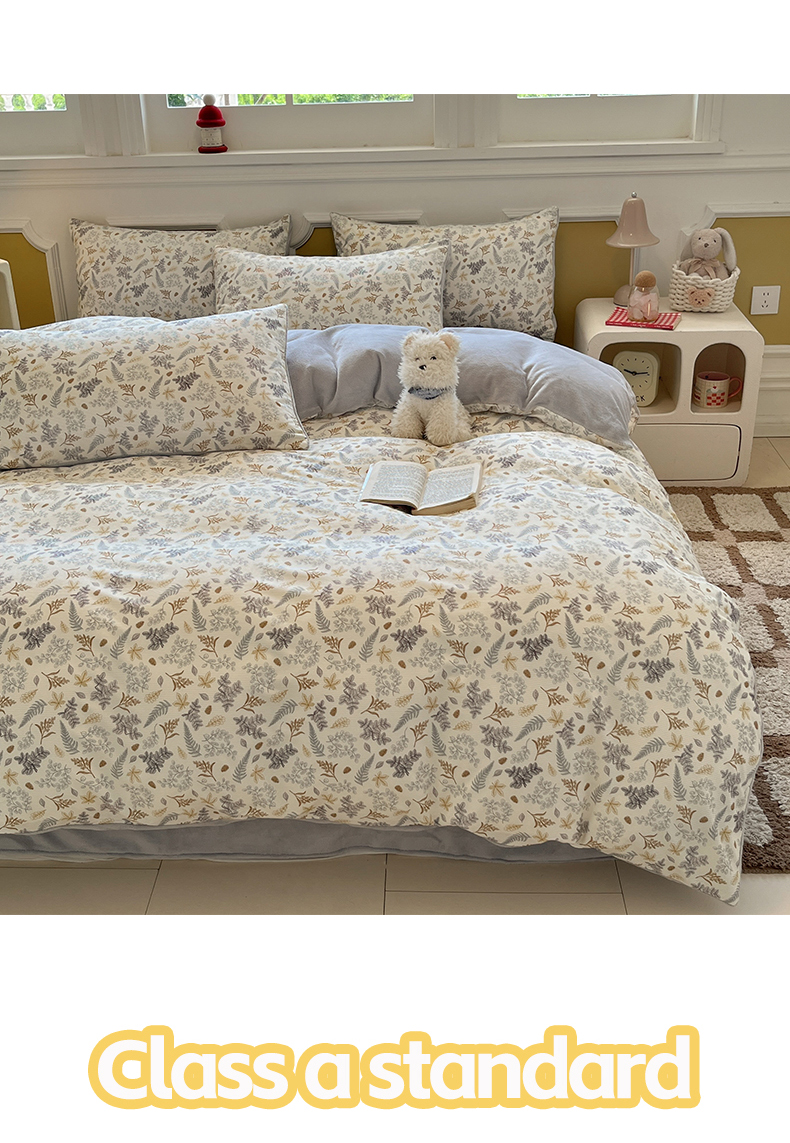 羚羊语家纺 2025新款灯芯绒 温暖颂系列-印花牛奶绒四件套高克重简约卡通花卉提花加厚保暖床单床笠三件套(买家秀请联系客服!) 温暖颂-叶知秋