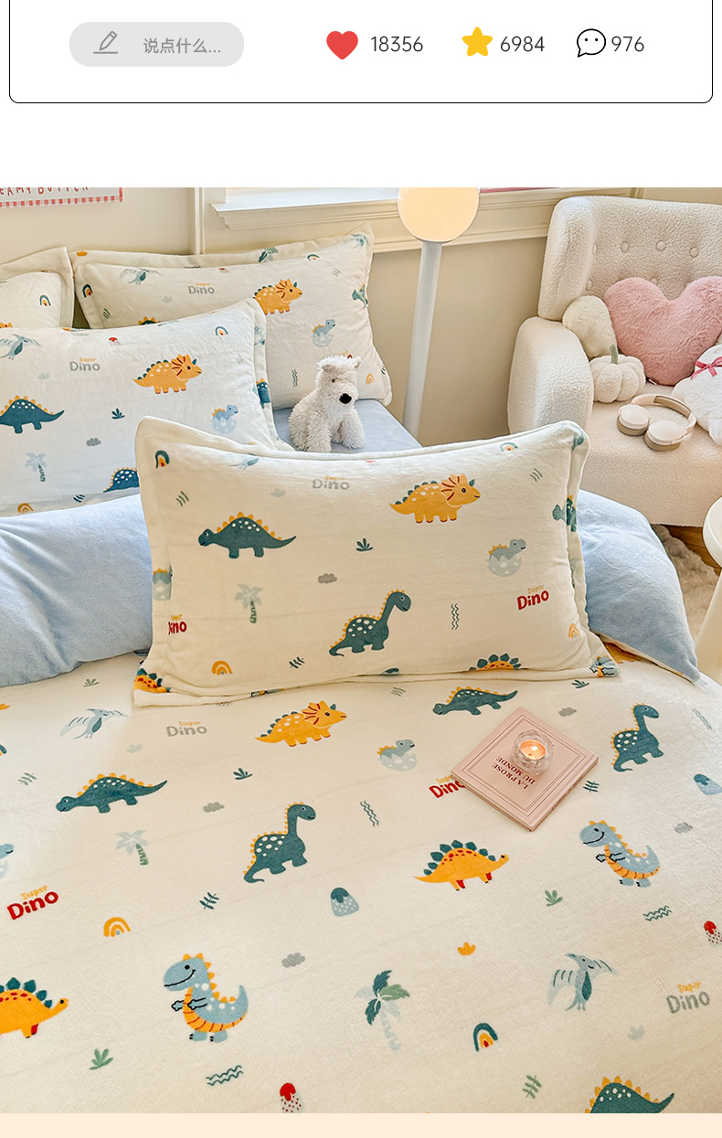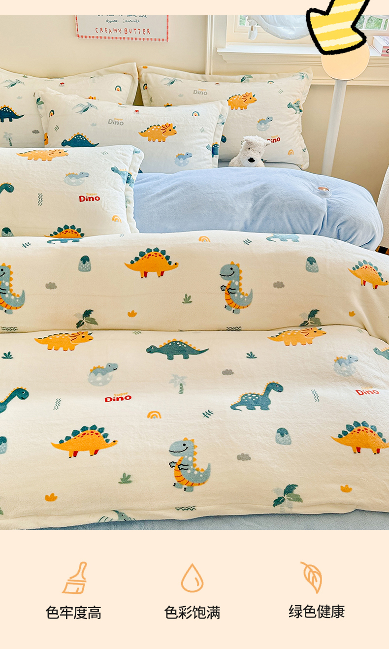 当前位置: 91家纺网 > 商品网购 > 床品套件 > 四件套 > 牛奶绒四件套 > 名兮家居 2025新款卡通时尚风高克重印花牛奶绒四件套 恐龙多多