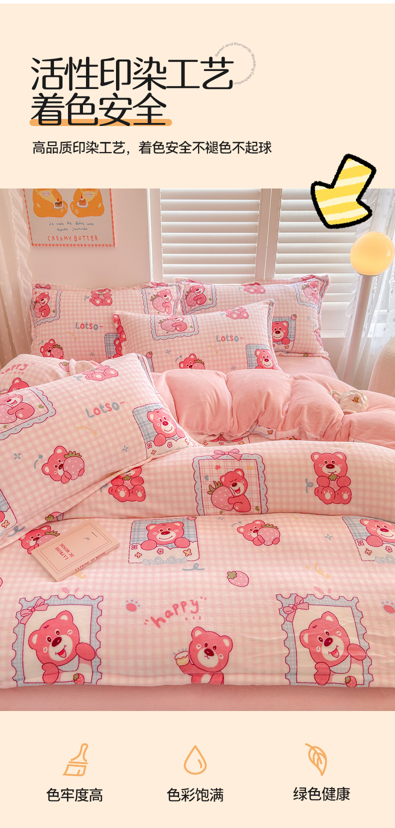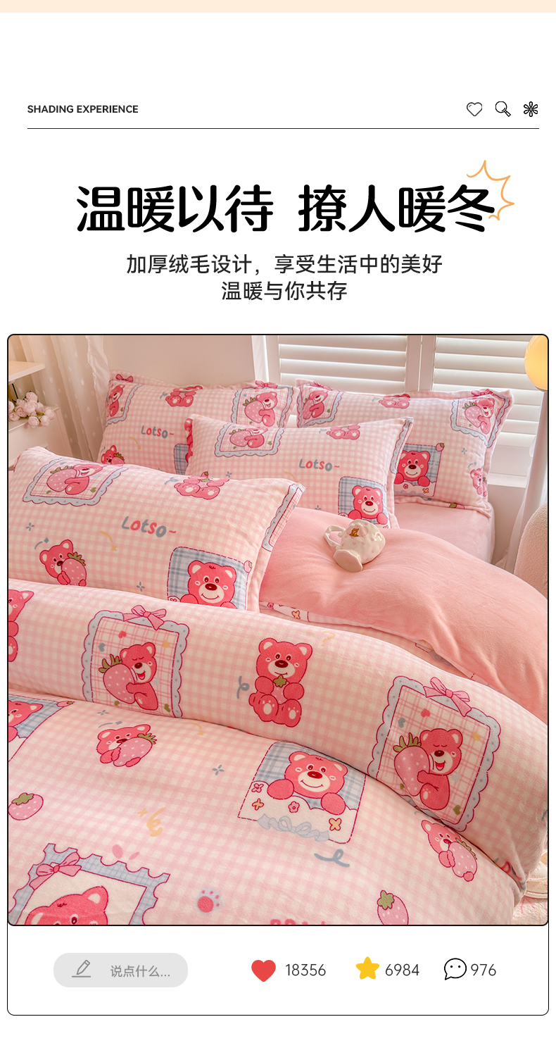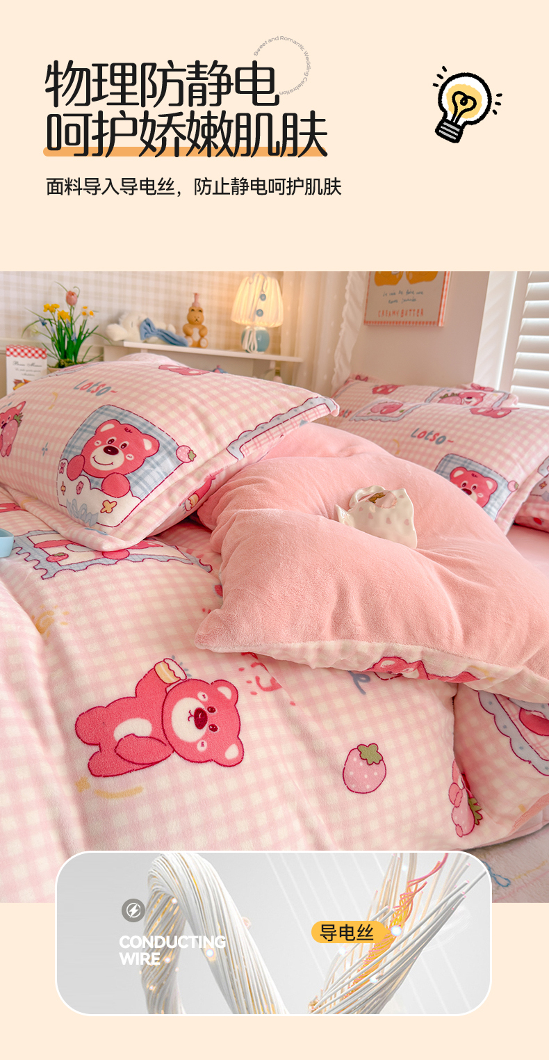 当前位置: 91家纺网 > 商品网购 > 床品套件 > 四件套 > 牛奶绒四件套 > 名兮家居 2025新款卡通时尚风高克重印花牛奶绒四件套 甜蜜熊仔