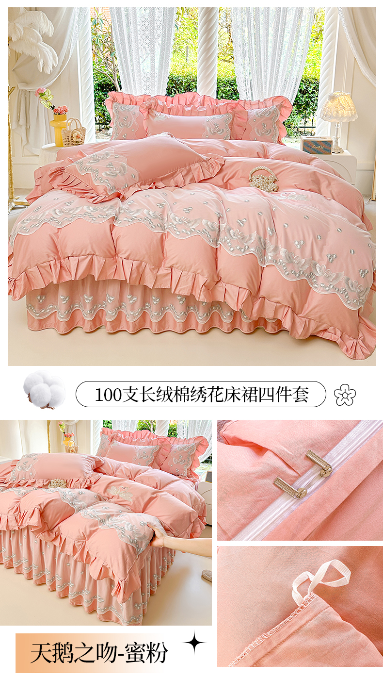 当前位置: 91家纺网 > 商品网购 > 床品套件 > 四件套 > 其它四件套 > 宜凡家纺 2025新款长绒棉绣花夹棉床裙四件套--天鹅之吻系列 天鹅之吻-浅咖