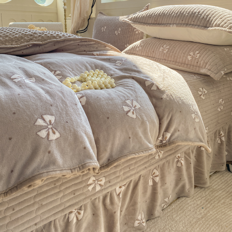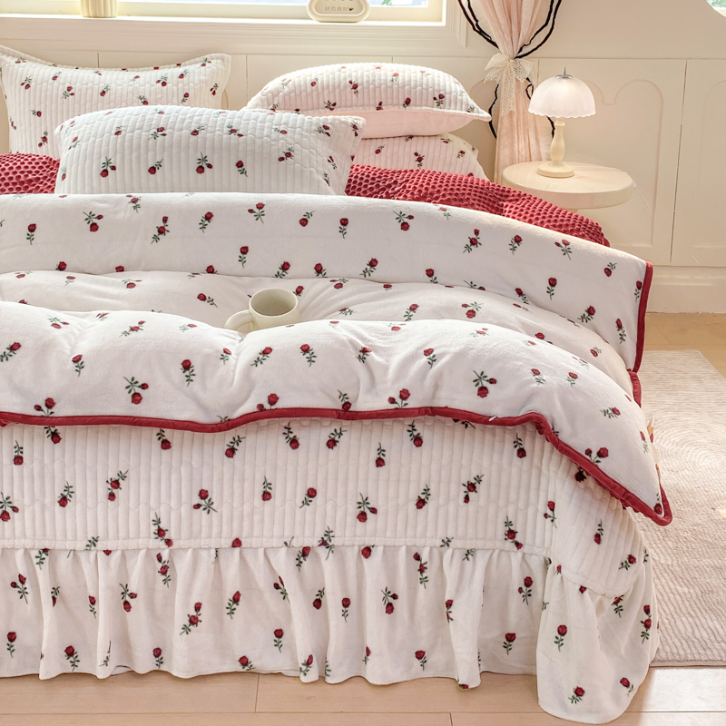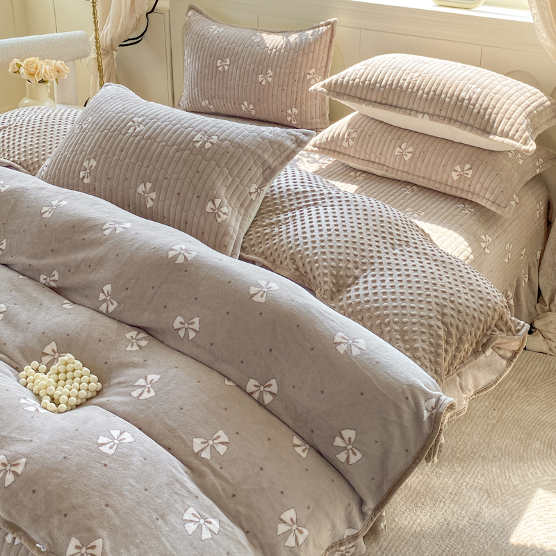 梦可莱家居 2025秋冬新品豆豆绒床盖大花边四件套 紫草莓