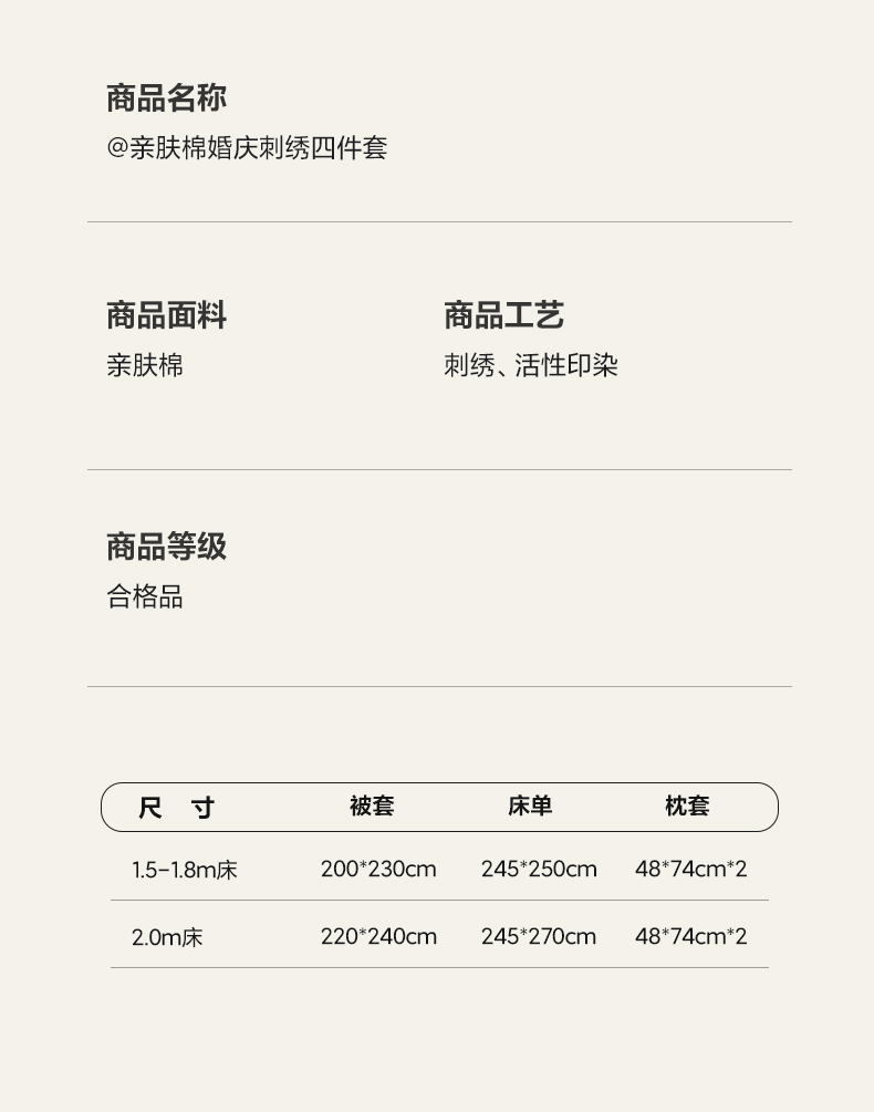 商品名称:欧乐蒂-2025新款-亲肤棉简约刺绣四件套 祥瑞