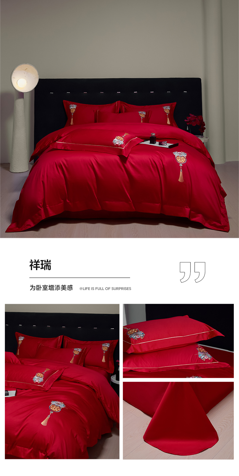 (总)欧乐蒂 2025新款设计师原创亲肤棉婚庆四件套,云喜东方,双喜临门,喜乐,喜事连连,爱恋,玫瑰爱恋,花开富贵,金枝玉叶,锦绣佳缘,龙姿风采