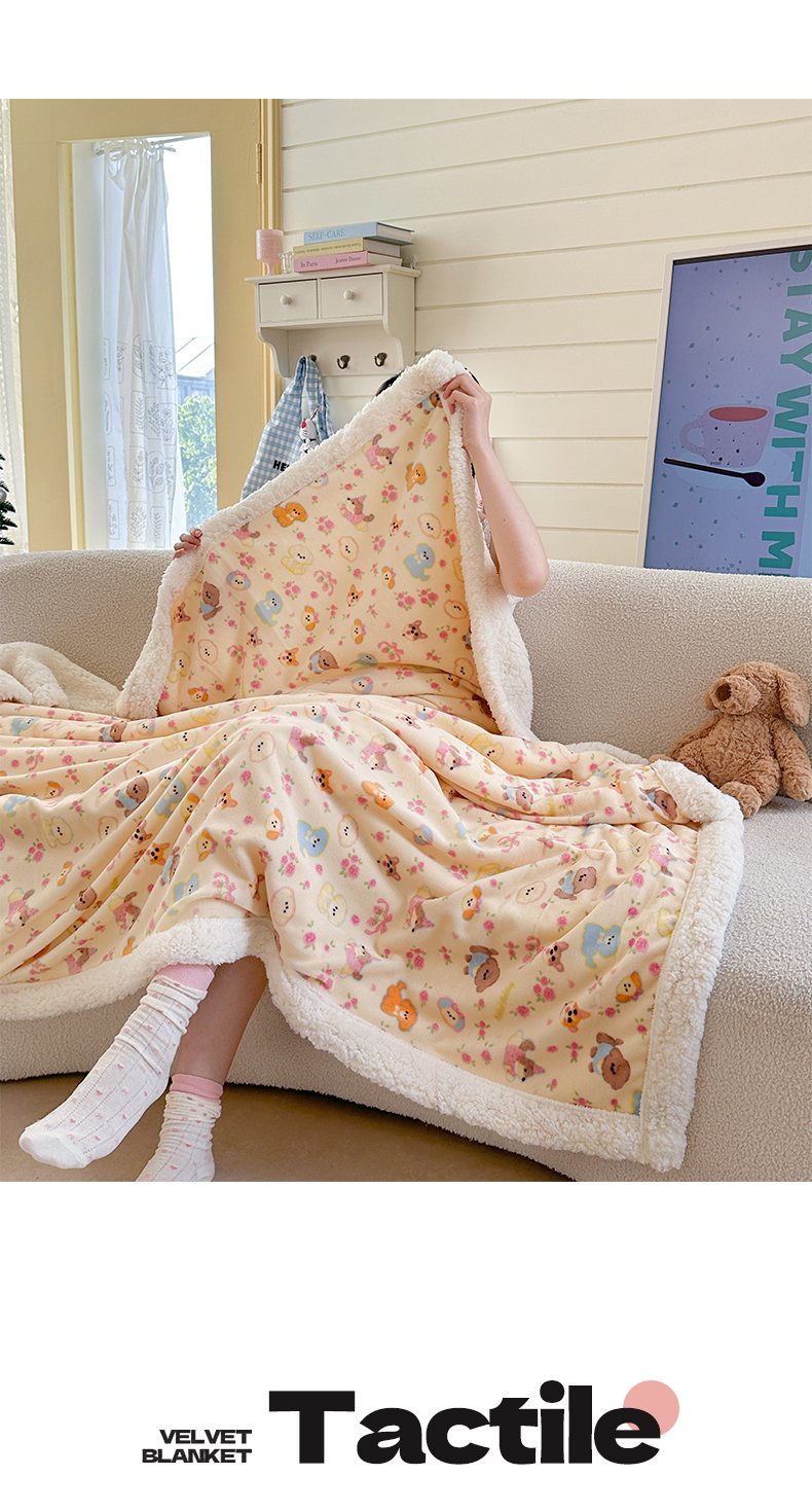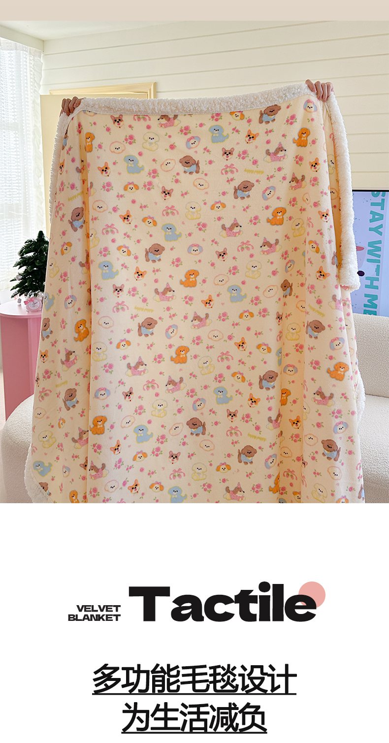贝扬思家纺 2025新款秋冬可爱系牛奶绒羊羔绒多功能毛毯奶盖系列 奶盖-小狗团子