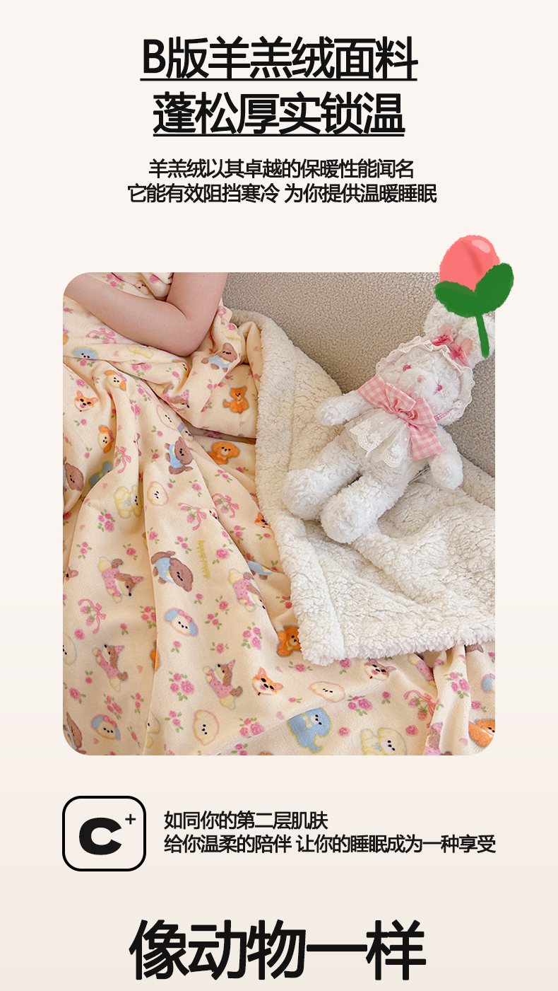 商品名称:贝扬思家纺 2025新款秋冬可爱系牛奶绒羊羔绒多功能毛毯奶盖系列 奶盖-小狗团子