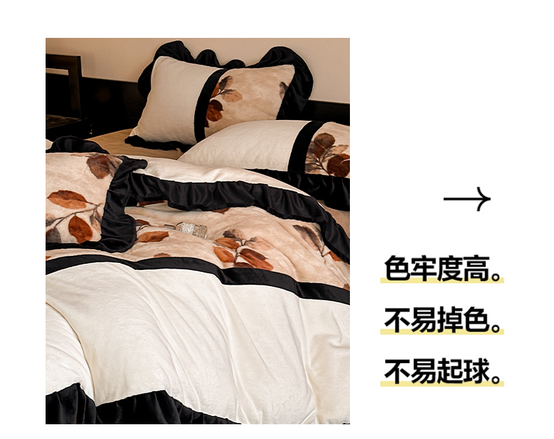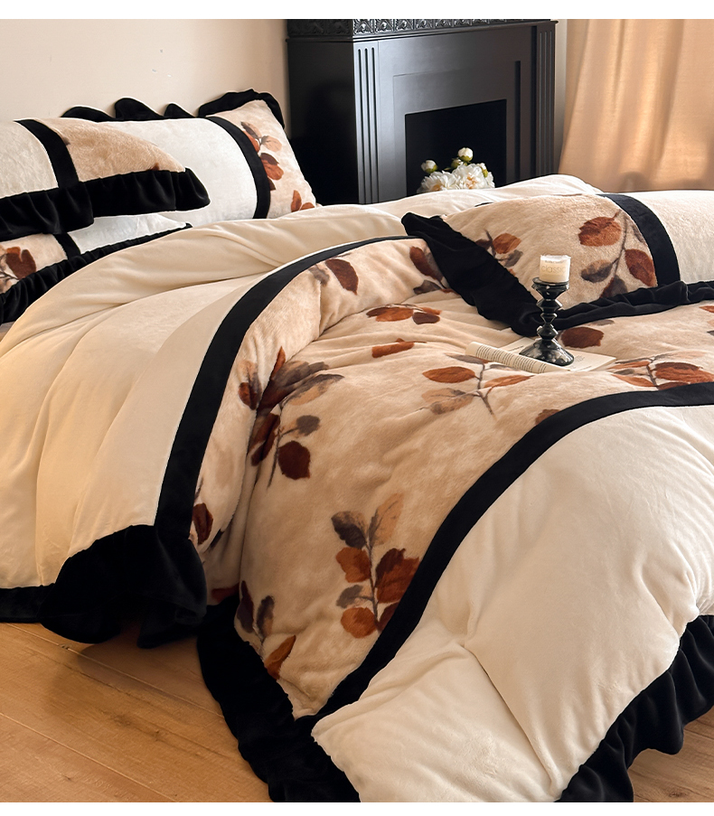 (总)子曰 2025新款雕花加厚牛奶绒宽边工艺款四件套-小香风,小香风-咖,小香风-粉,小香风-绿,小香风-米白,小香风-紫