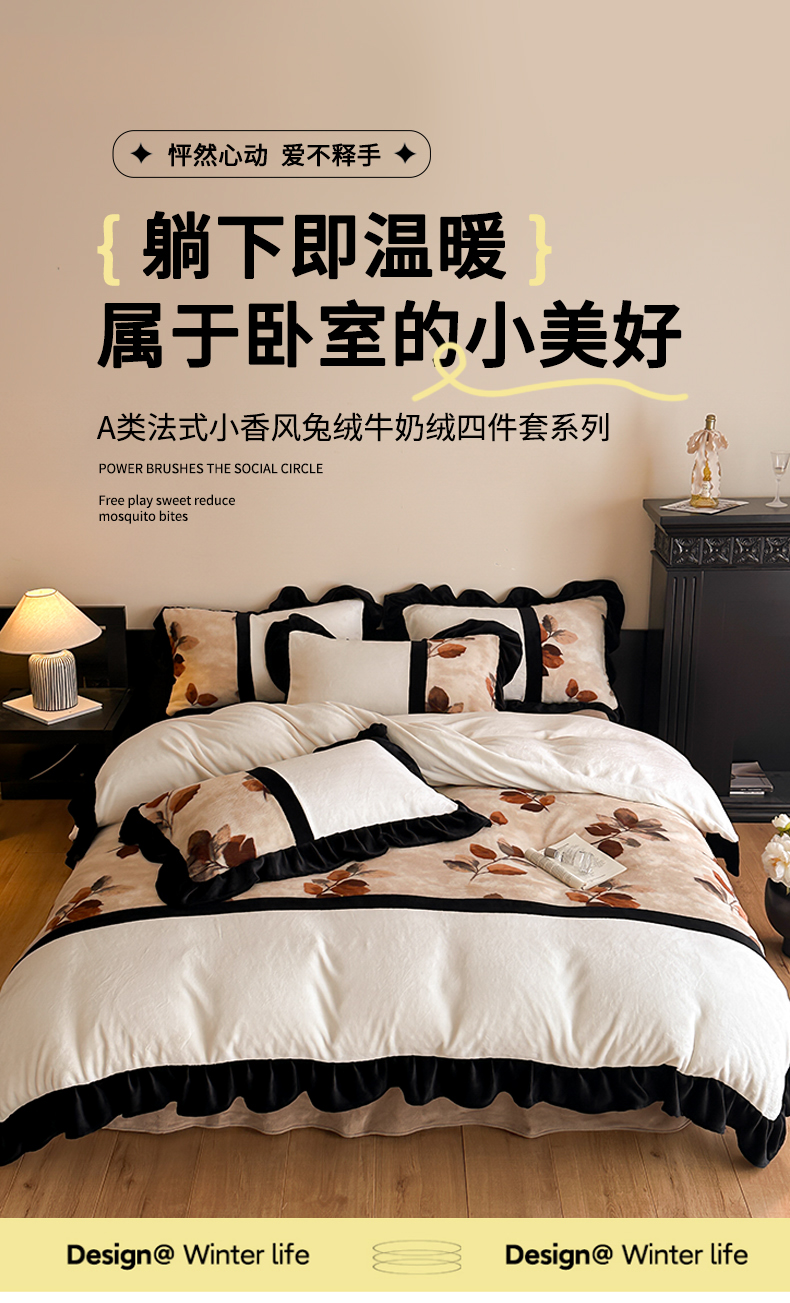 商品名称:子曰 2025新款A类法式轻奢赫本风兔绒牛奶绒四件套美拉德系 法式-曼丽