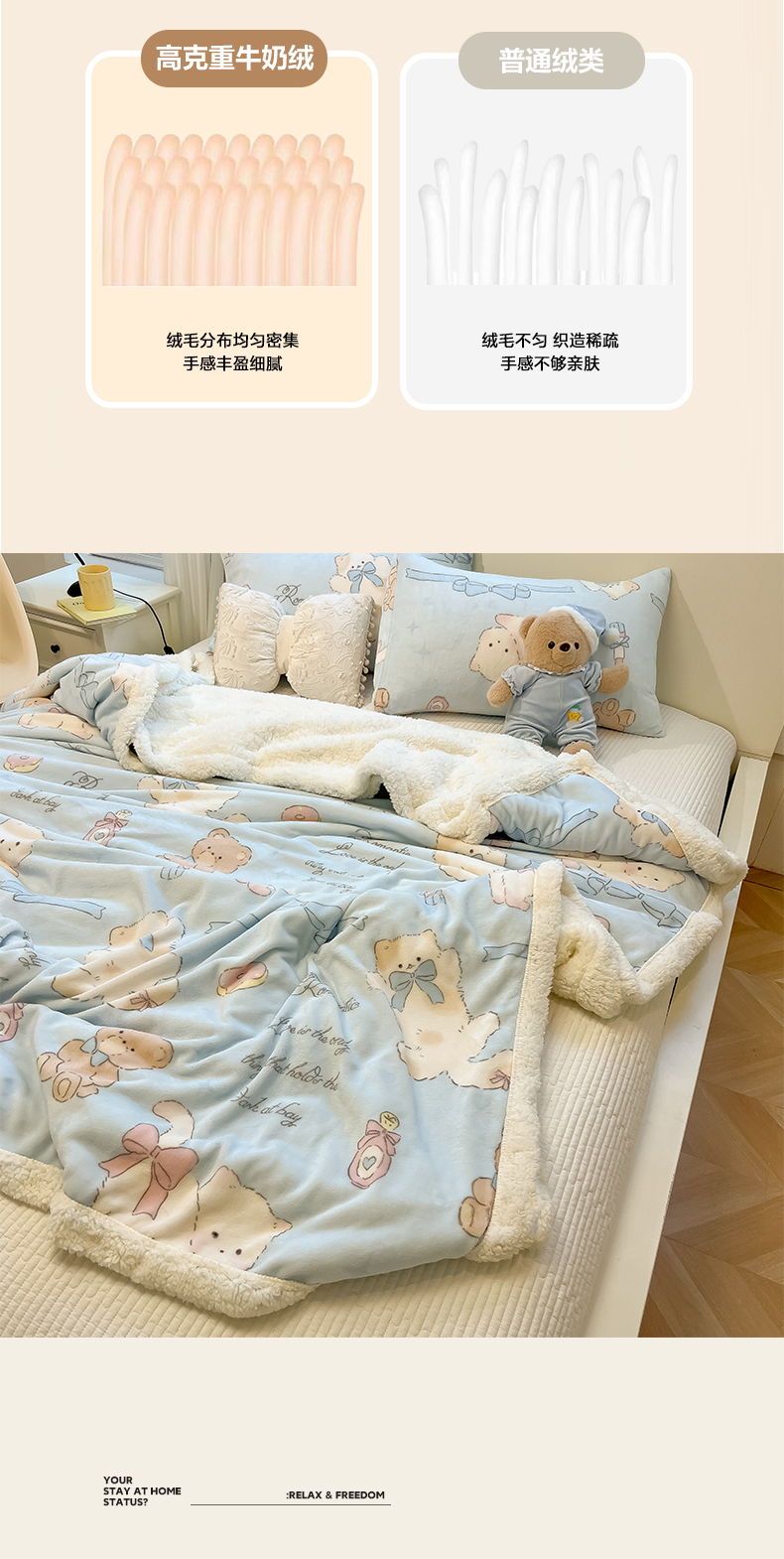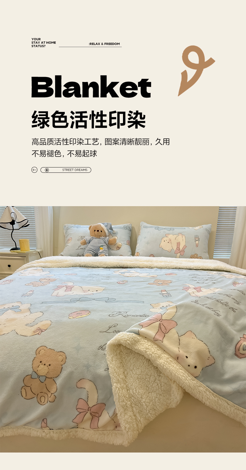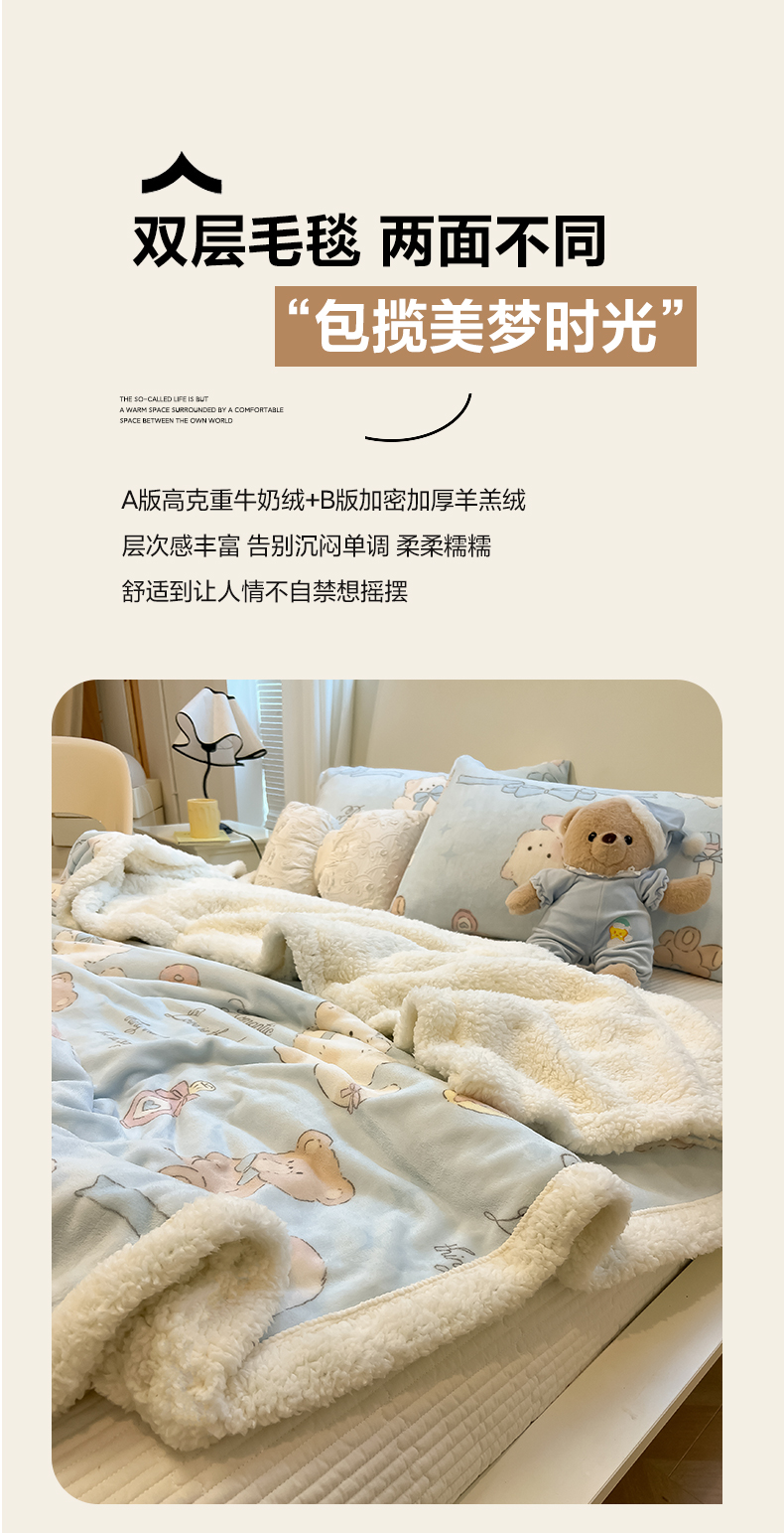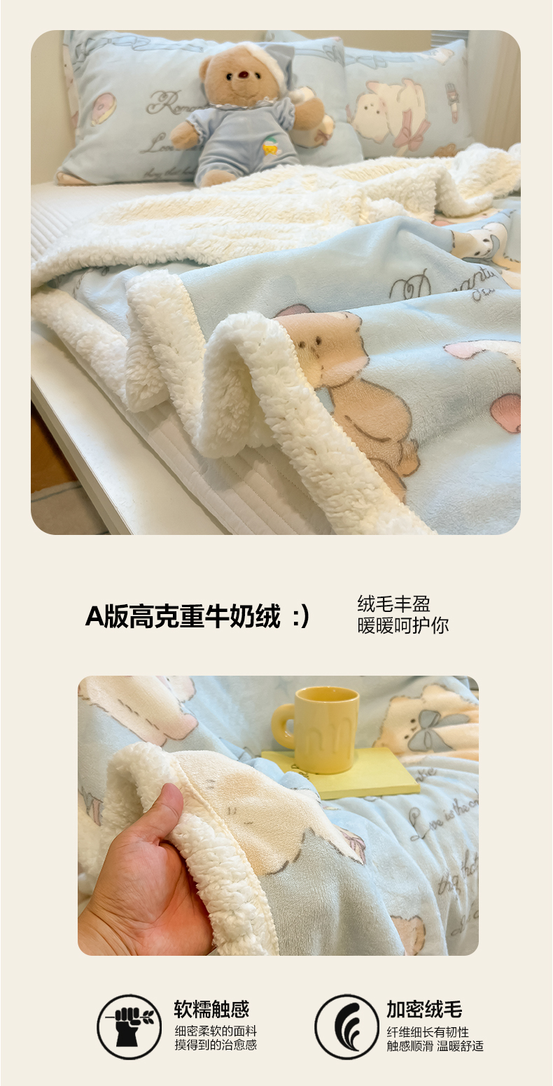 当前位置: 91家纺网 > 商品网购 > 毛毯休闲毯绒毯 > 毛毯 > 盼季家纺 2025新款日韩奶油风羊羔绒+牛奶绒可爱卡通毛毯沙发毯盖毯 羊羔绒毛毯-奶油小熊