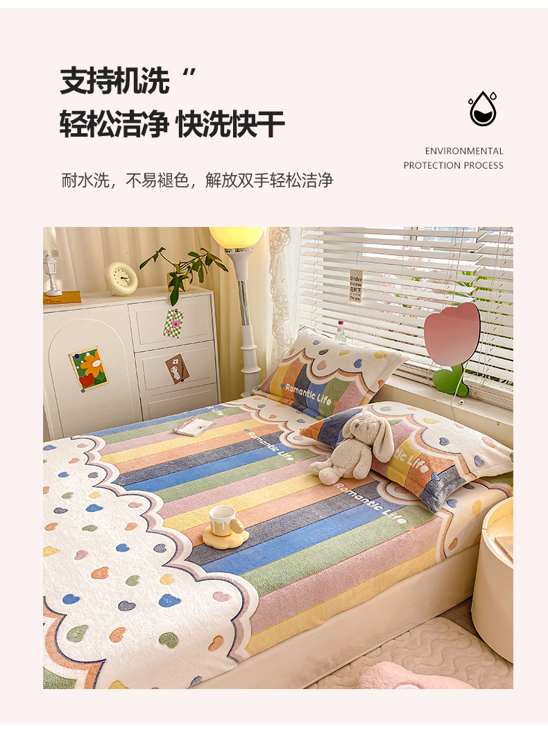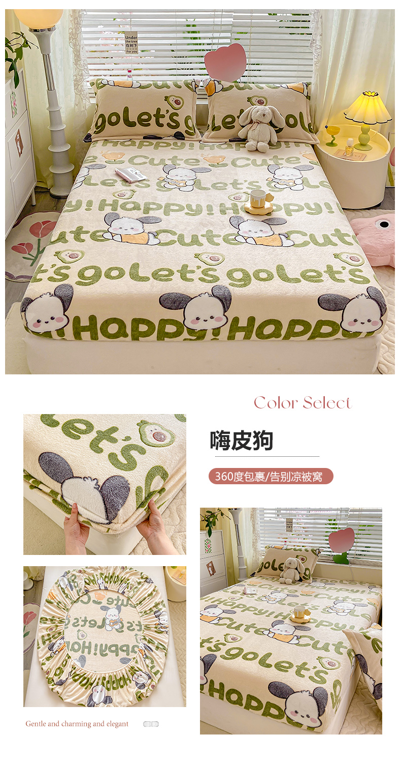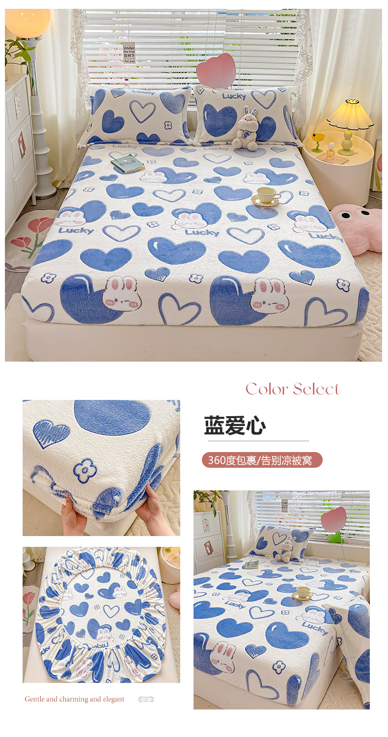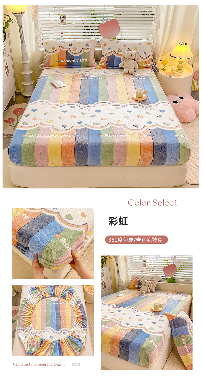 (总)热卖爆款·雪花绒卡通床笠牛奶绒保暖床垫保护套绒枕套外贸跨境直播电商,彩虹,开心南瓜,腊肠小狗,罗马,花园兔,花海,小恐龙,星星熊,涂鸦小狗,繁花,嗨皮狗,草莓熊,彩色毛球,动物世界,蓝爱心